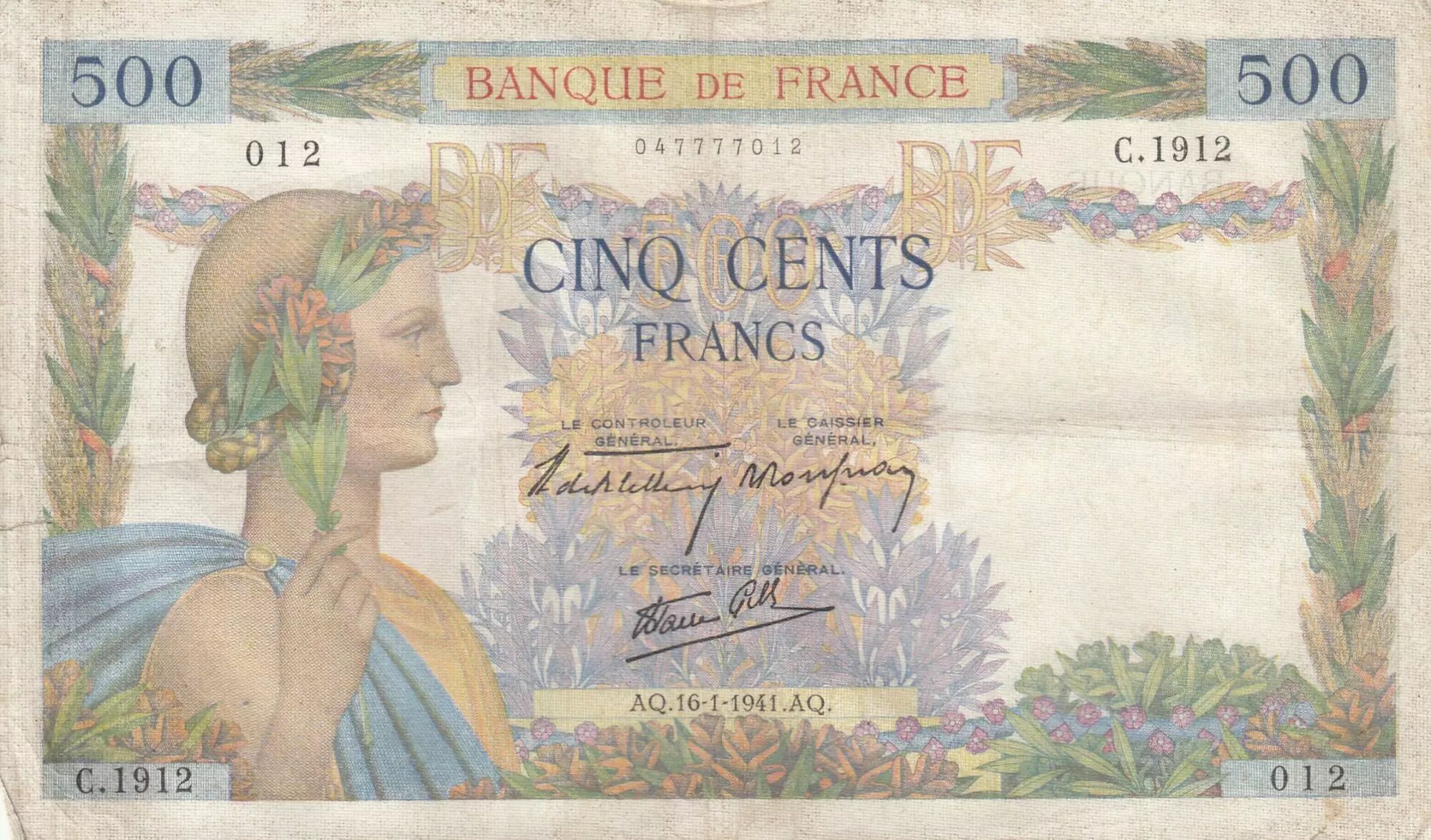 Billet France 500 francs - La Paix - 16-01-1941 - Série C.1912