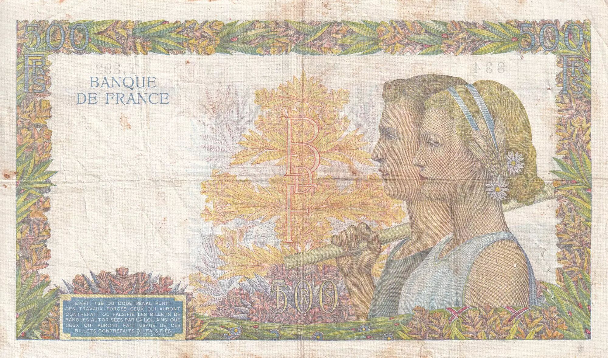 Banknote France 500 Francs - La Paix - 16-05-1940 - Serial Y.392 - P.95