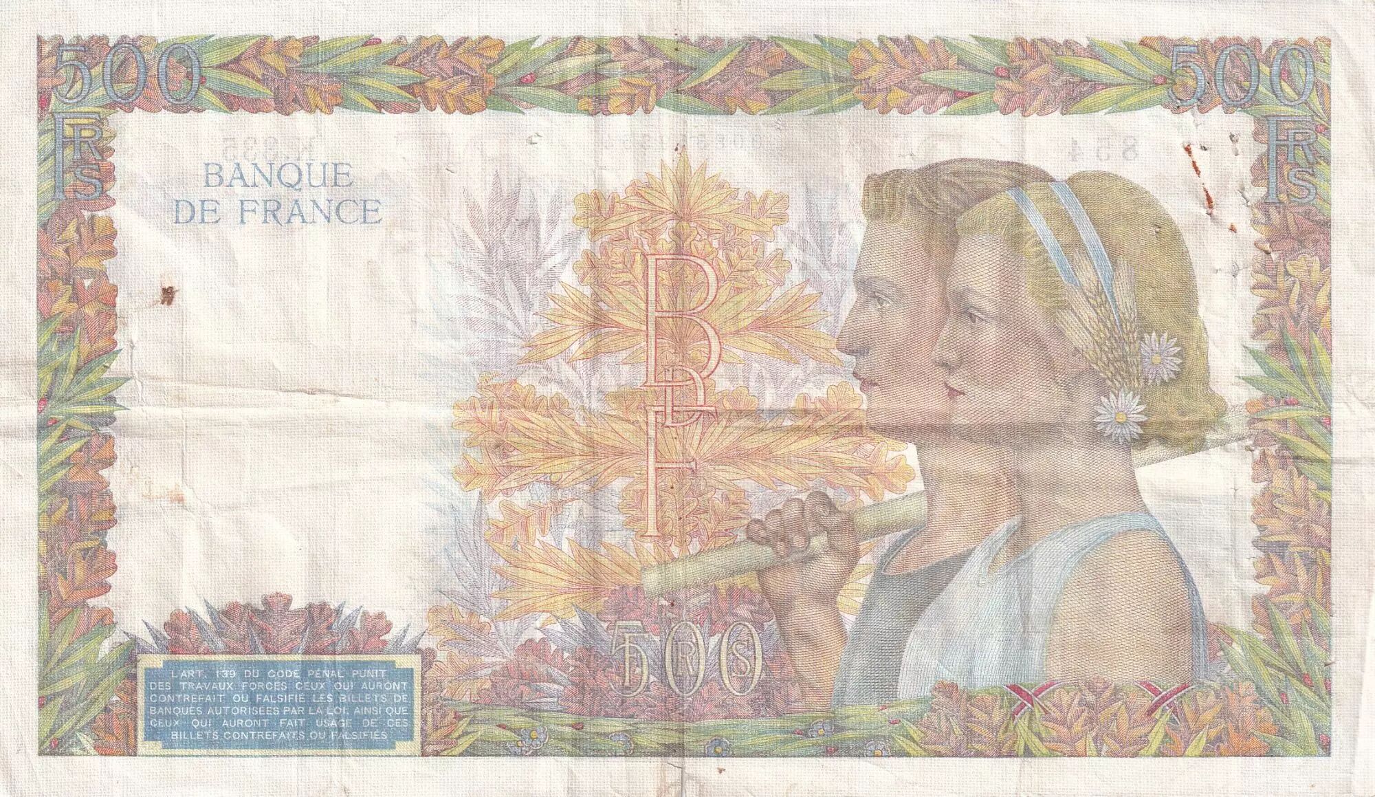 Accueil > Archivage > France 500 Francs La Paix - 16-05-1940 - Série K.335