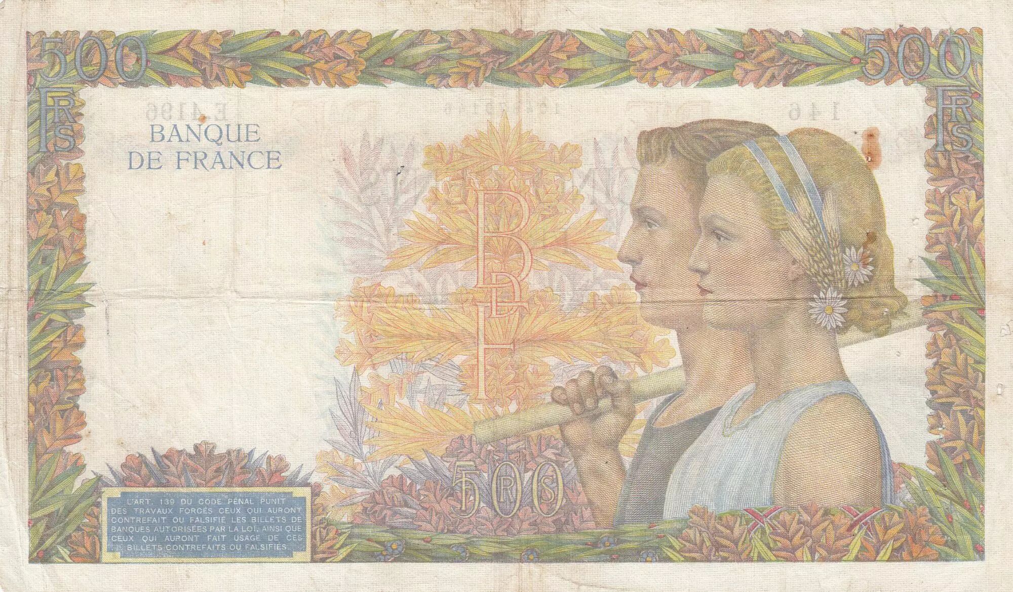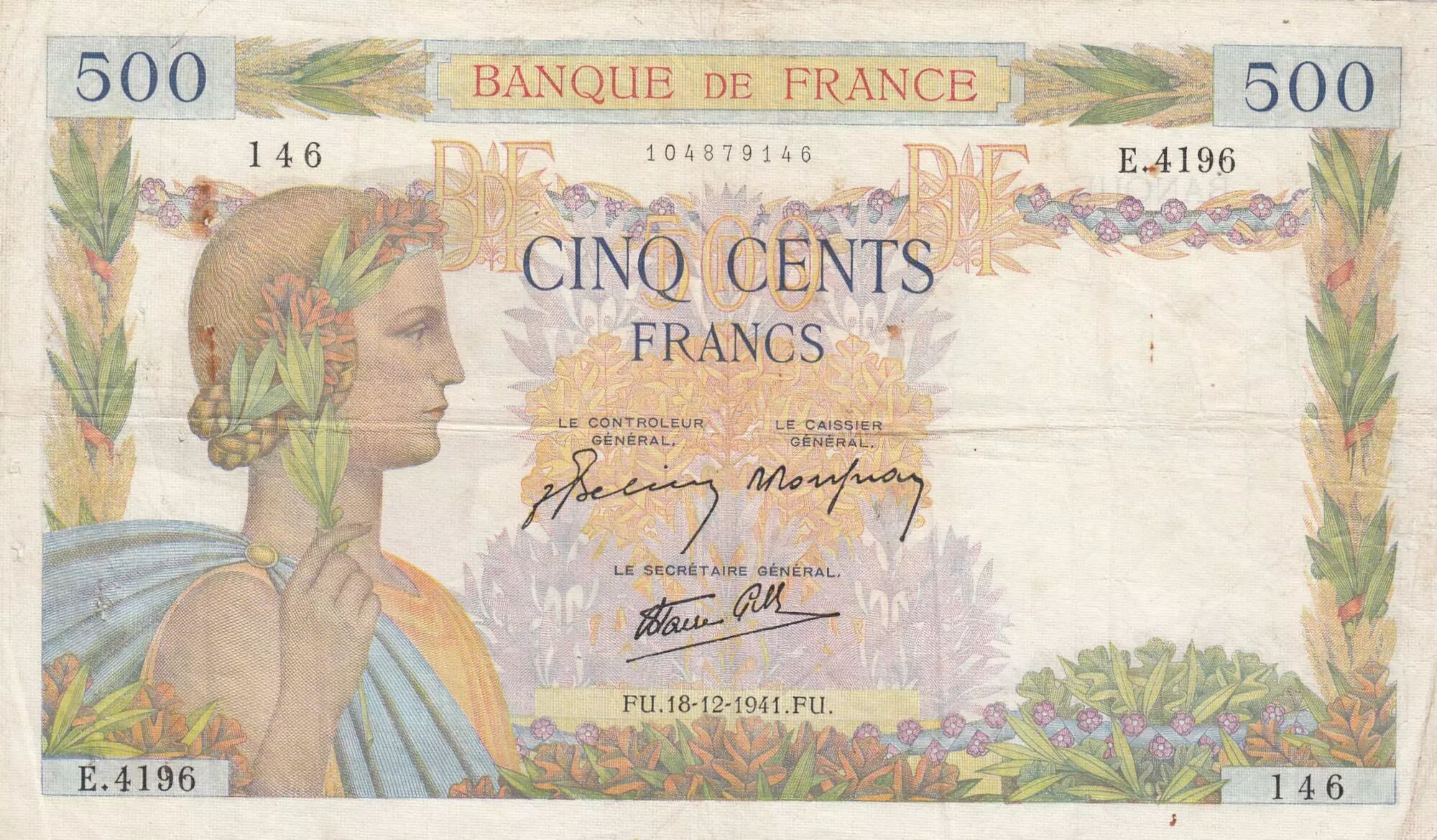 Accueil > Archivage > France 500 Francs La Paix - 18-12-1941 - Série E.4196
