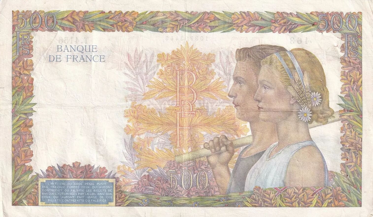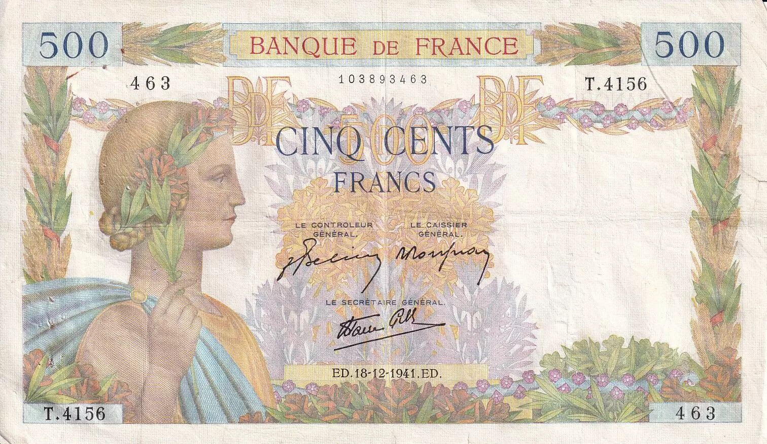 Billet France 500 Francs La Paix - 18-12-1941 Série T.4156