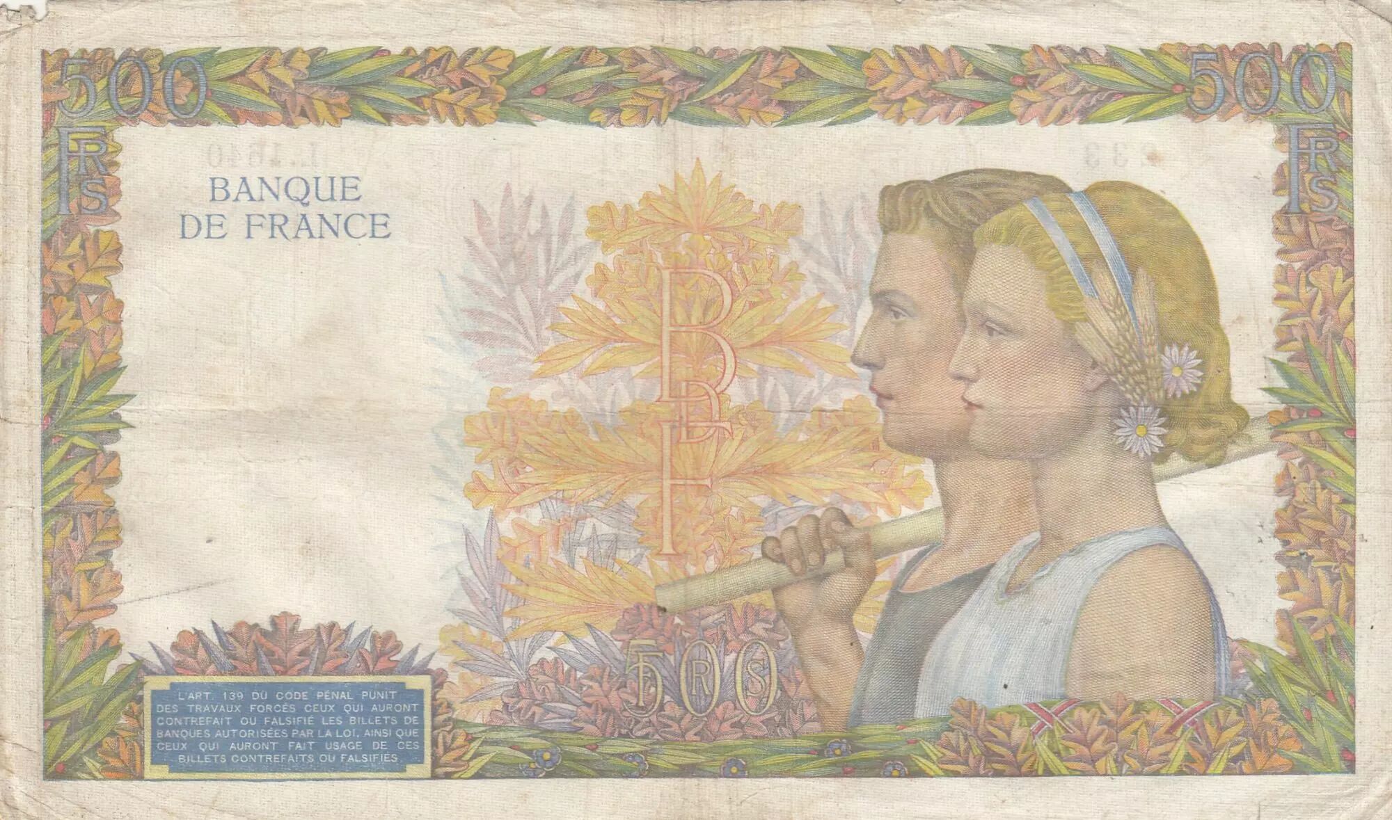 Billet France 500 francs - La Paix - 19-12-1940 - Série L.1640