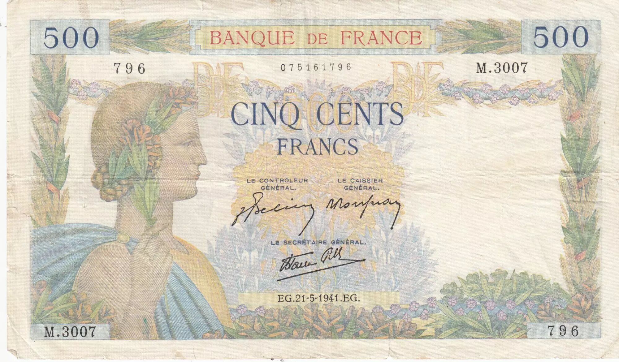 Accueil > Archivage > France 500 Francs - La Paix - 21-05-1941 - Série M.3007 - F.32.17