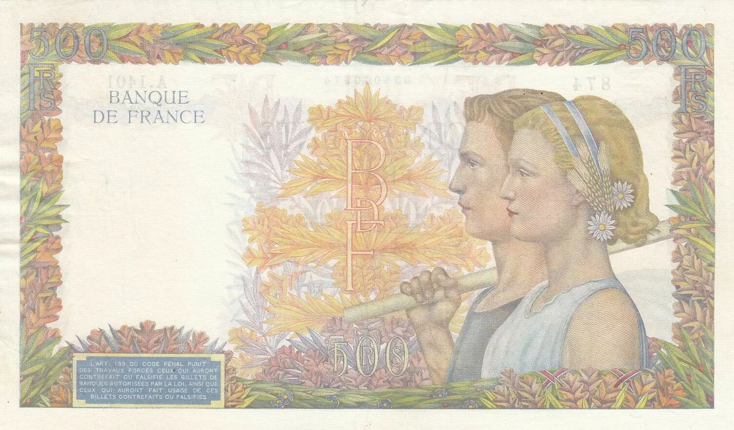 Billet France 500 Francs La Paix - 28-11-1940 - Série A.1401