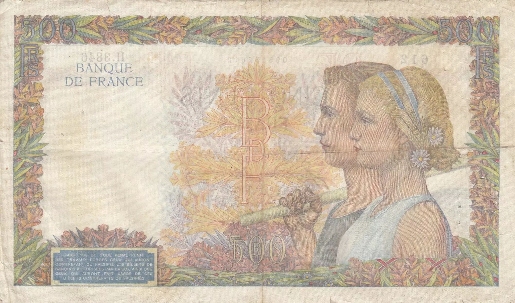 Billet France 500 francs - La Paix - 30-10-1941 - Série H.3846