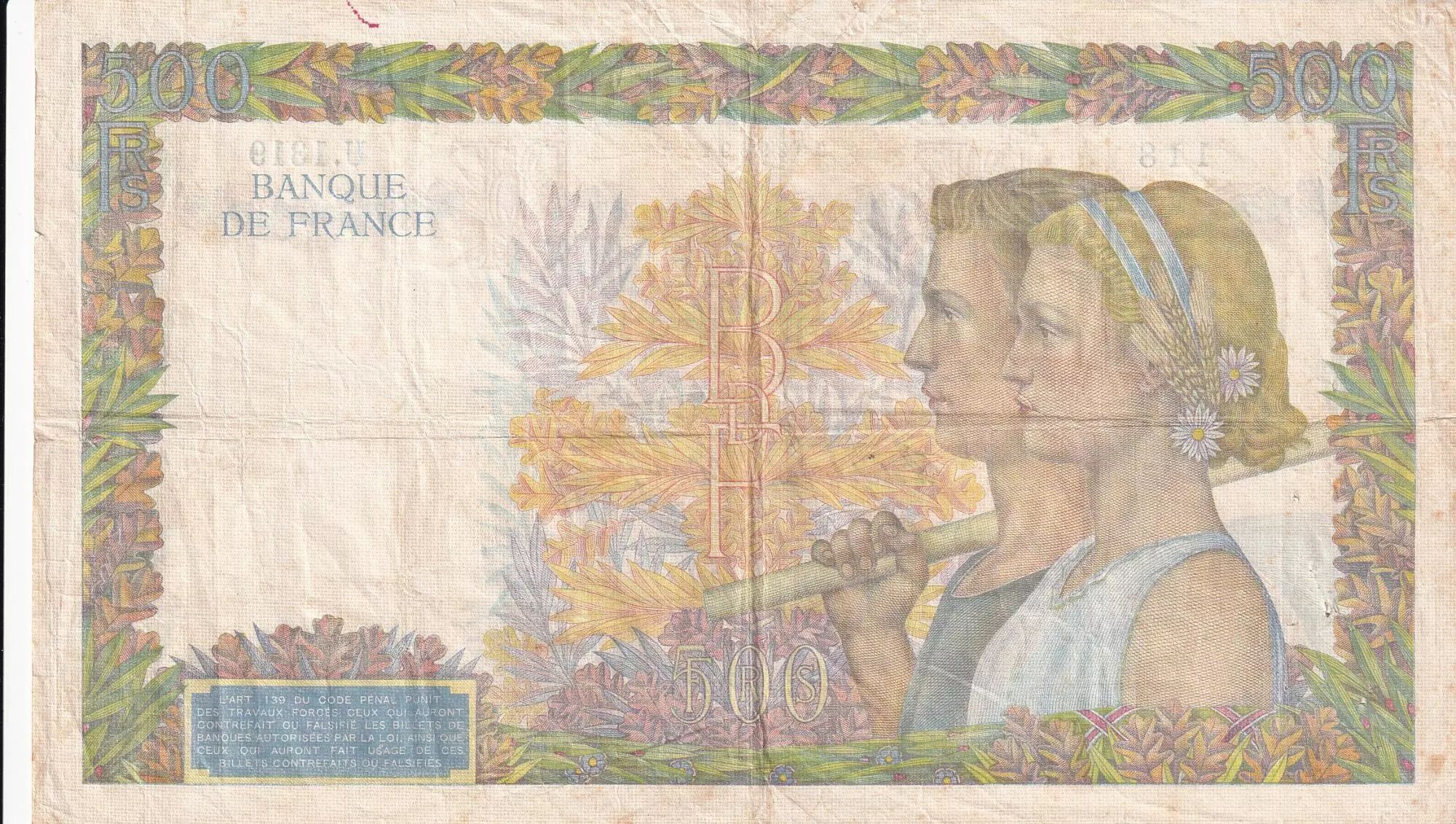 Billet France 500 Francs La Paix - 31-10-1940 - Série U.1319