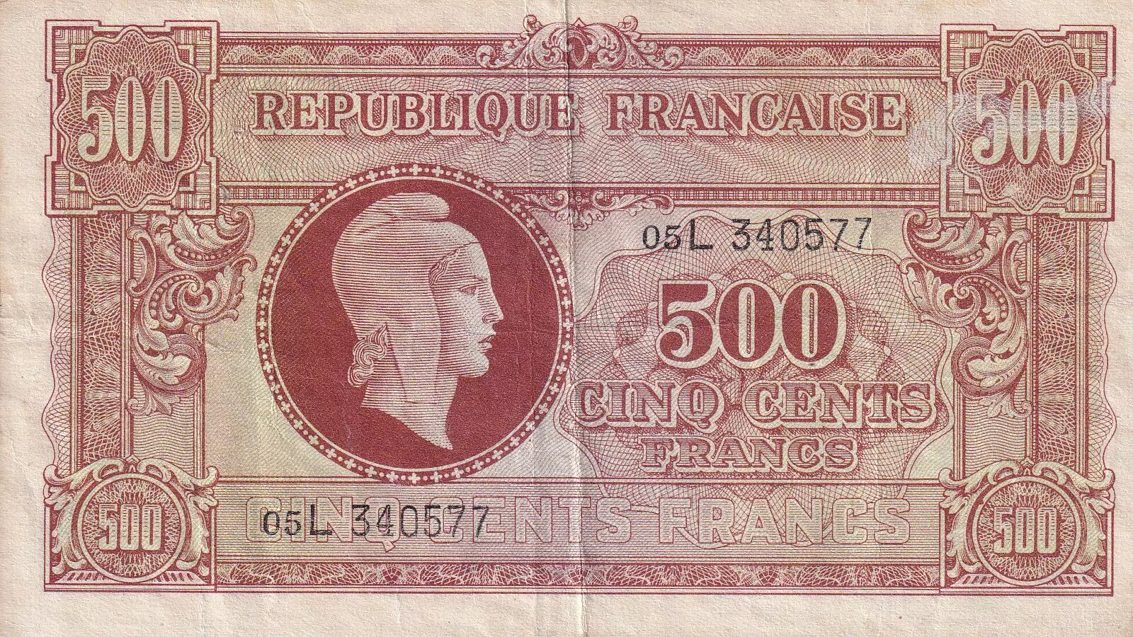Home > > France 500 Francs - Marianne - 1945 - Letter L - Serial 05 L - VF - P.106