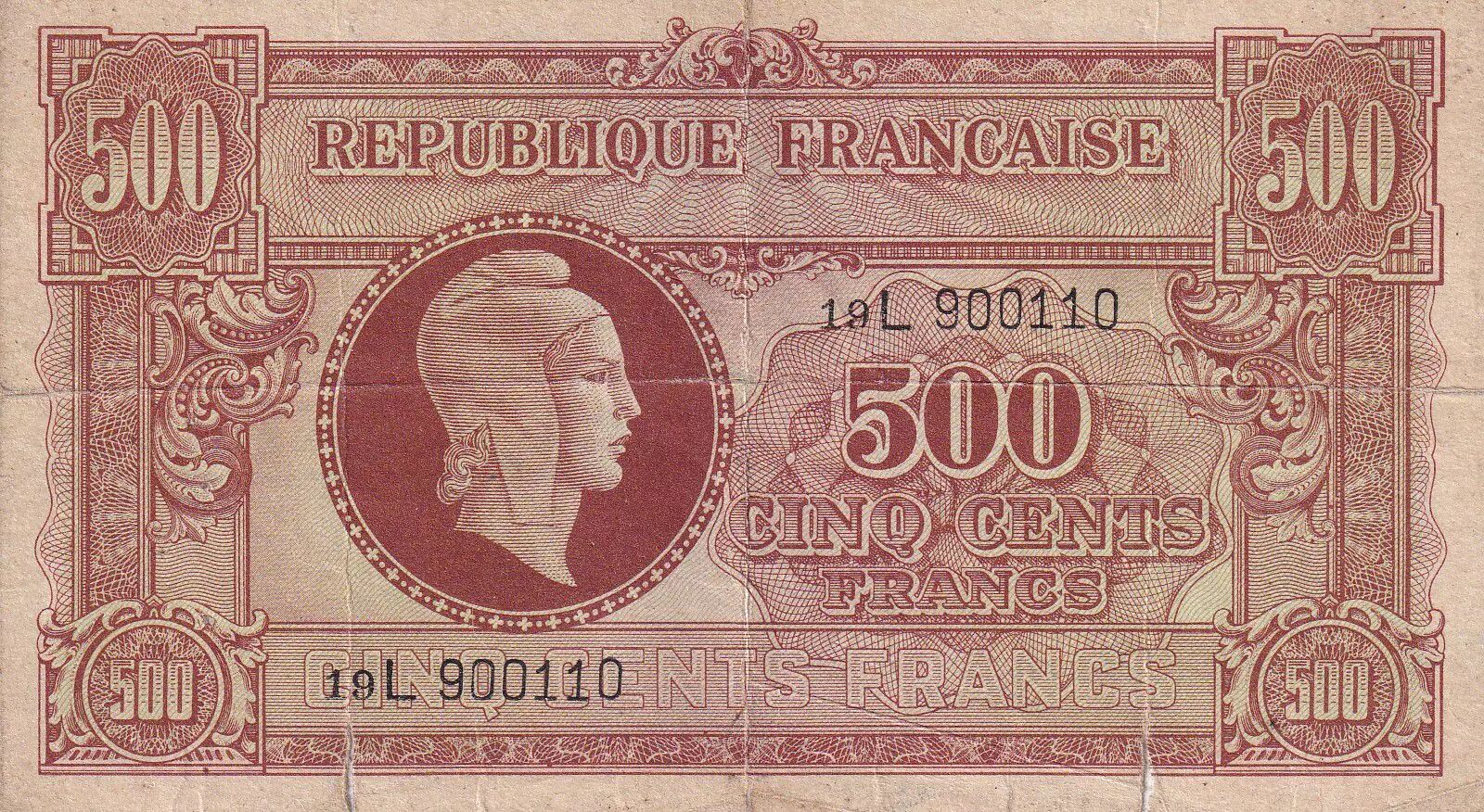 Accueil > Archivage > France 500 Francs - Marianne - 1945 - Lettre L - VF.11.01