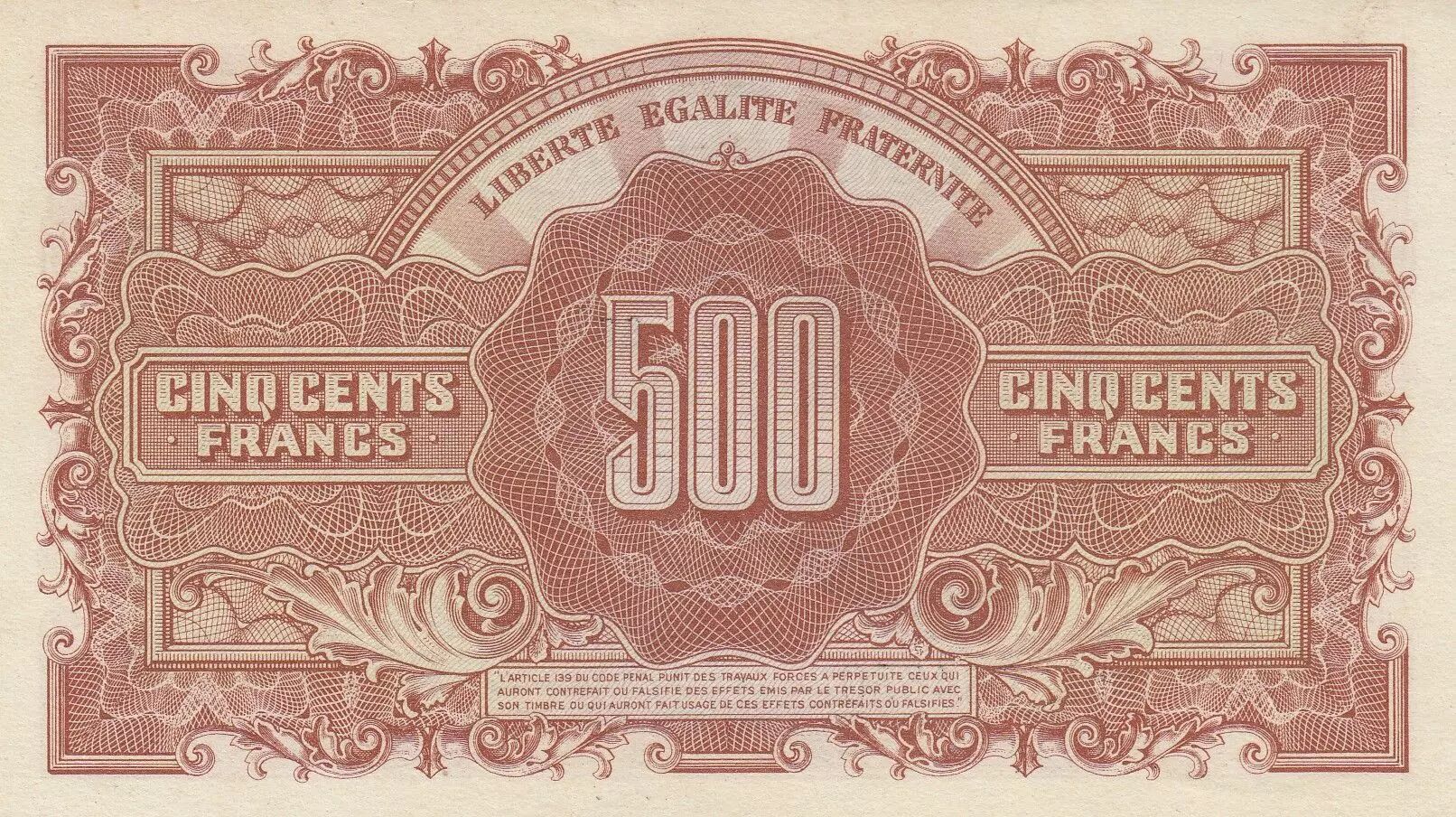 Home > French Banknotes > Treasury Bills > France 500 Francs - Marianne - 1945 - Serial 83L