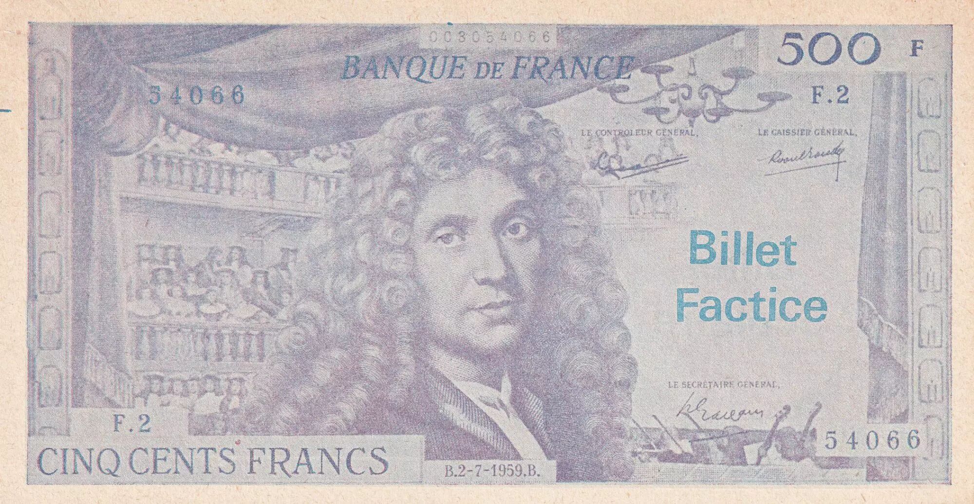 Accueil > Archivage > France 500 Francs - Molière - Billet scolaire