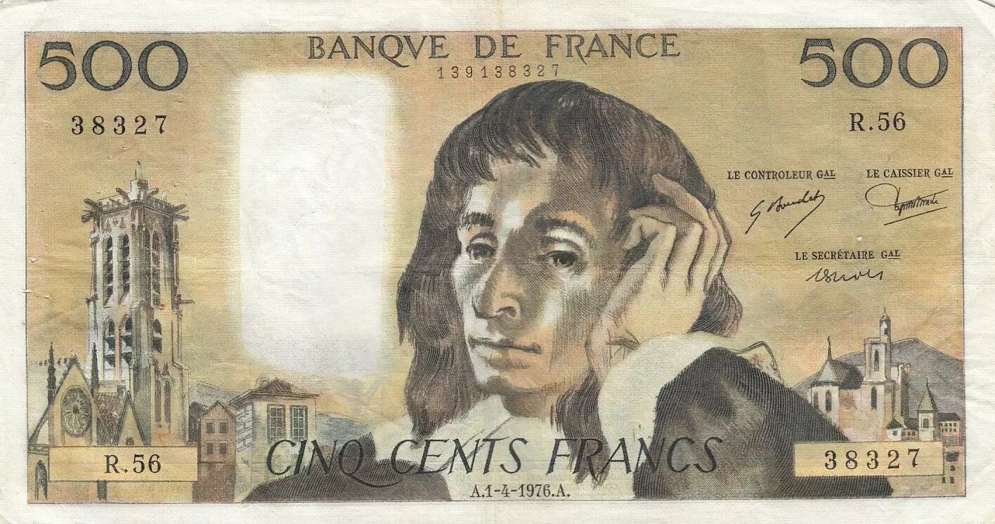 Banknote France 500 francs - Pascal - 01-04-1976 - Série C.55