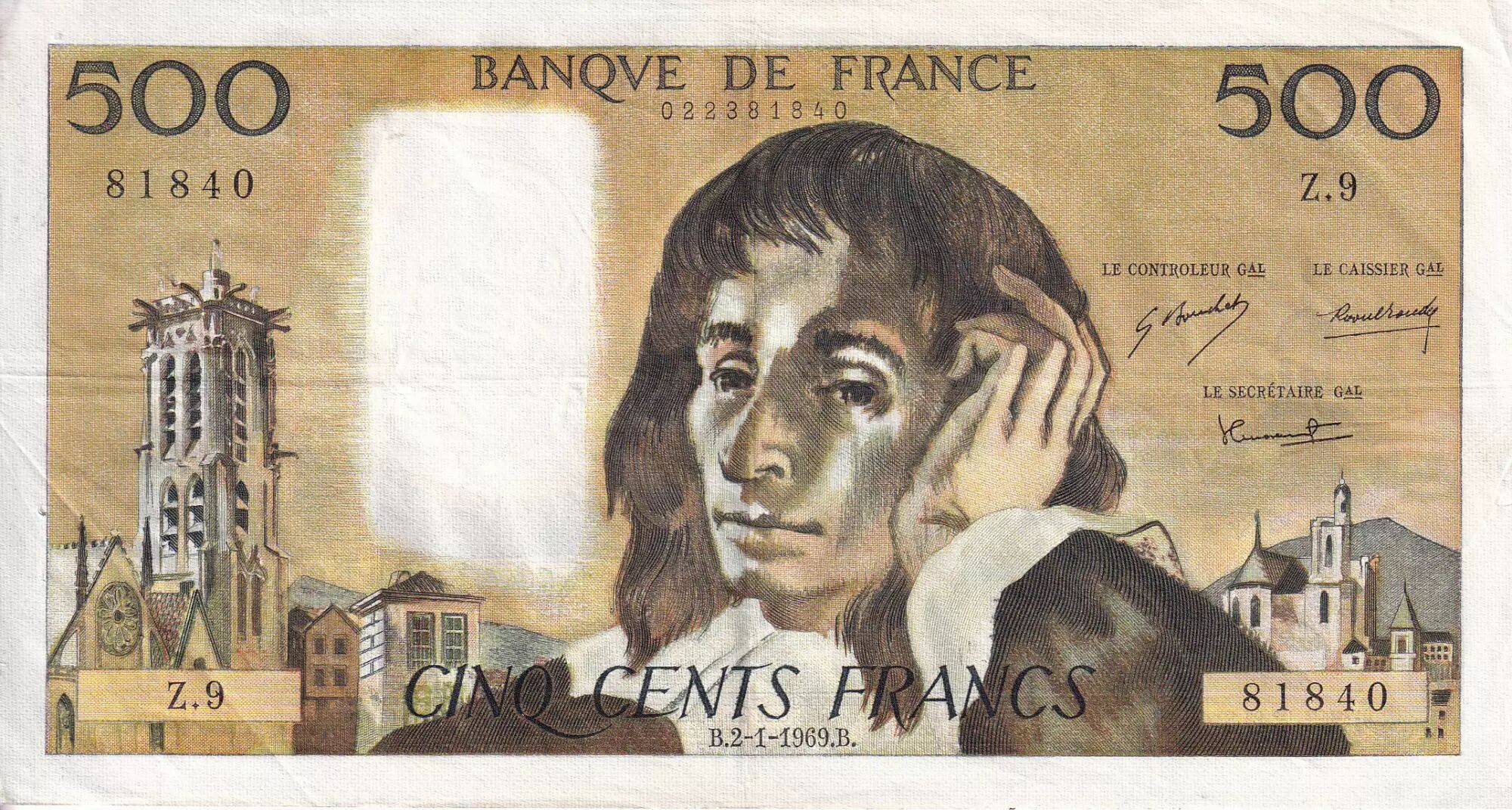 Accueil > Archivage > France 500 Francs - Pascal - 02-01-1969 - Série Z.9 - F.71.03