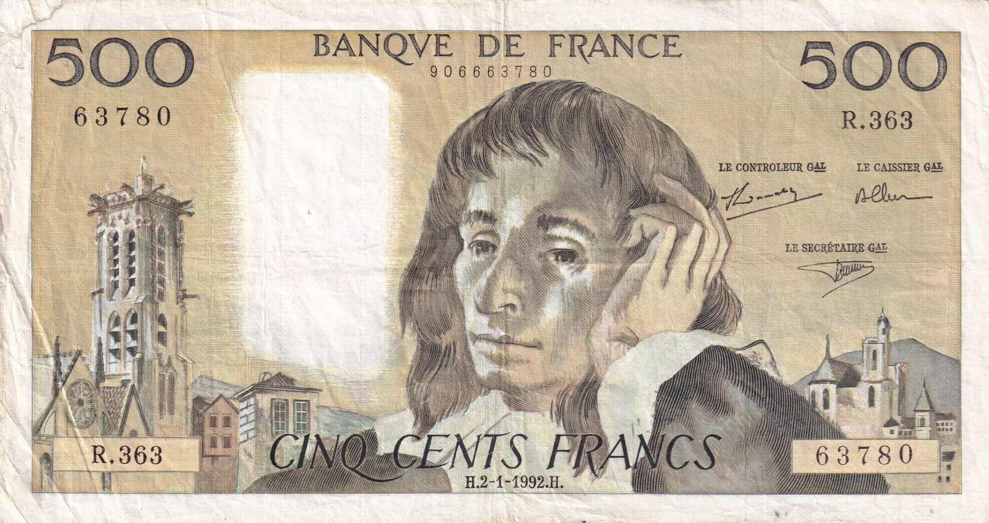 Accueil > Archivage > France 500 Francs Pascal - 02-01-1992 - Série R.363
