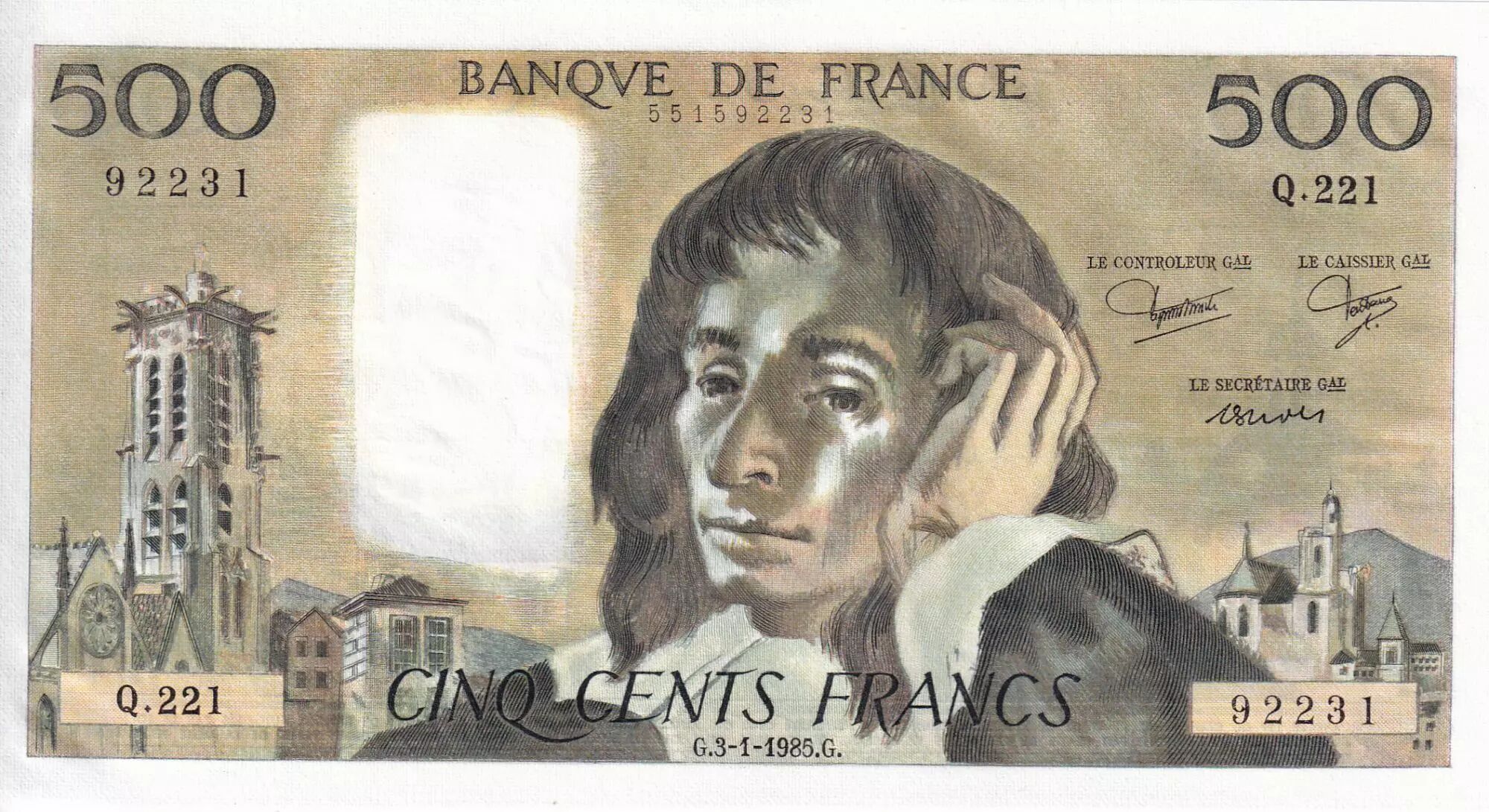 Accueil > Billets Français > Billets Banque de France > Billets 500 francs > Pascal type 1968 (1968-1993) > France 500 Francs - Pascal - 03-01-1985 - Série Q.221 - F.71.32