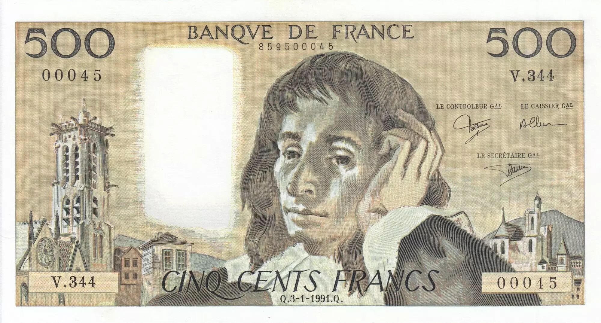 Accueil > Billets Français > Billets Banque de France > Billets 500 francs > Pascal type 1968 (1968-1993) > France 500 Francs - Pascal - 03-01-1991 - Série V.344 - Petit Numéro