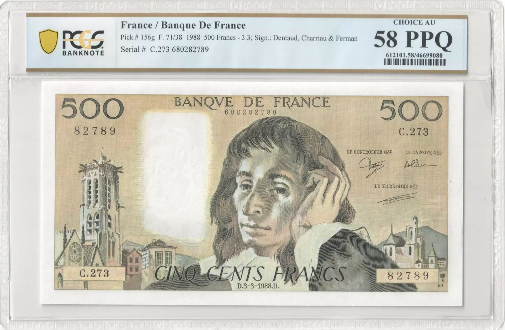 Billet France 500 Francs - Pascal - 03-03-1988 - Série C.273 - PCGS 58 PPQ