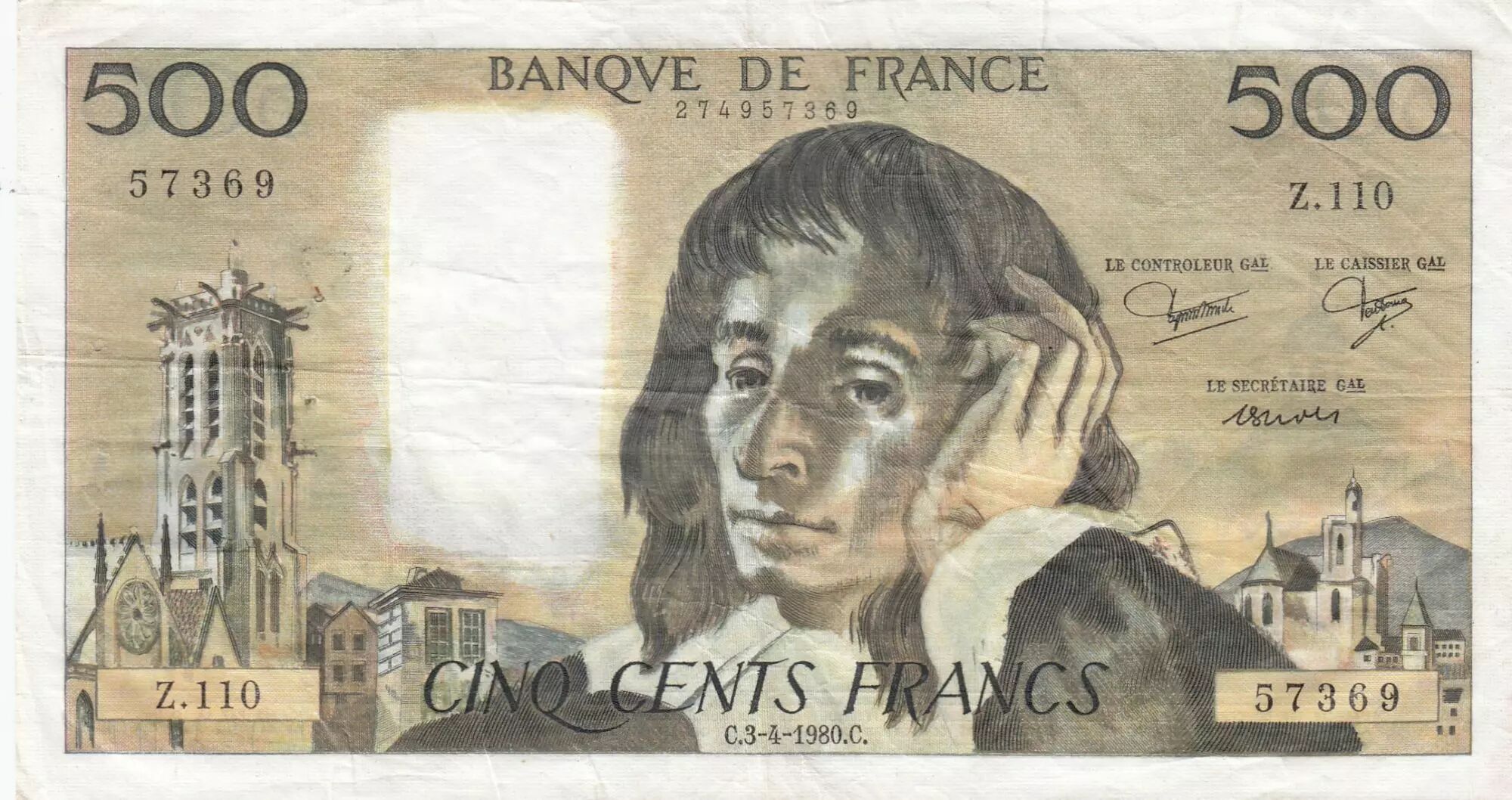 Accueil > Archivage > France 500 Francs Pascal - 03-04-1980 - Série Z.110