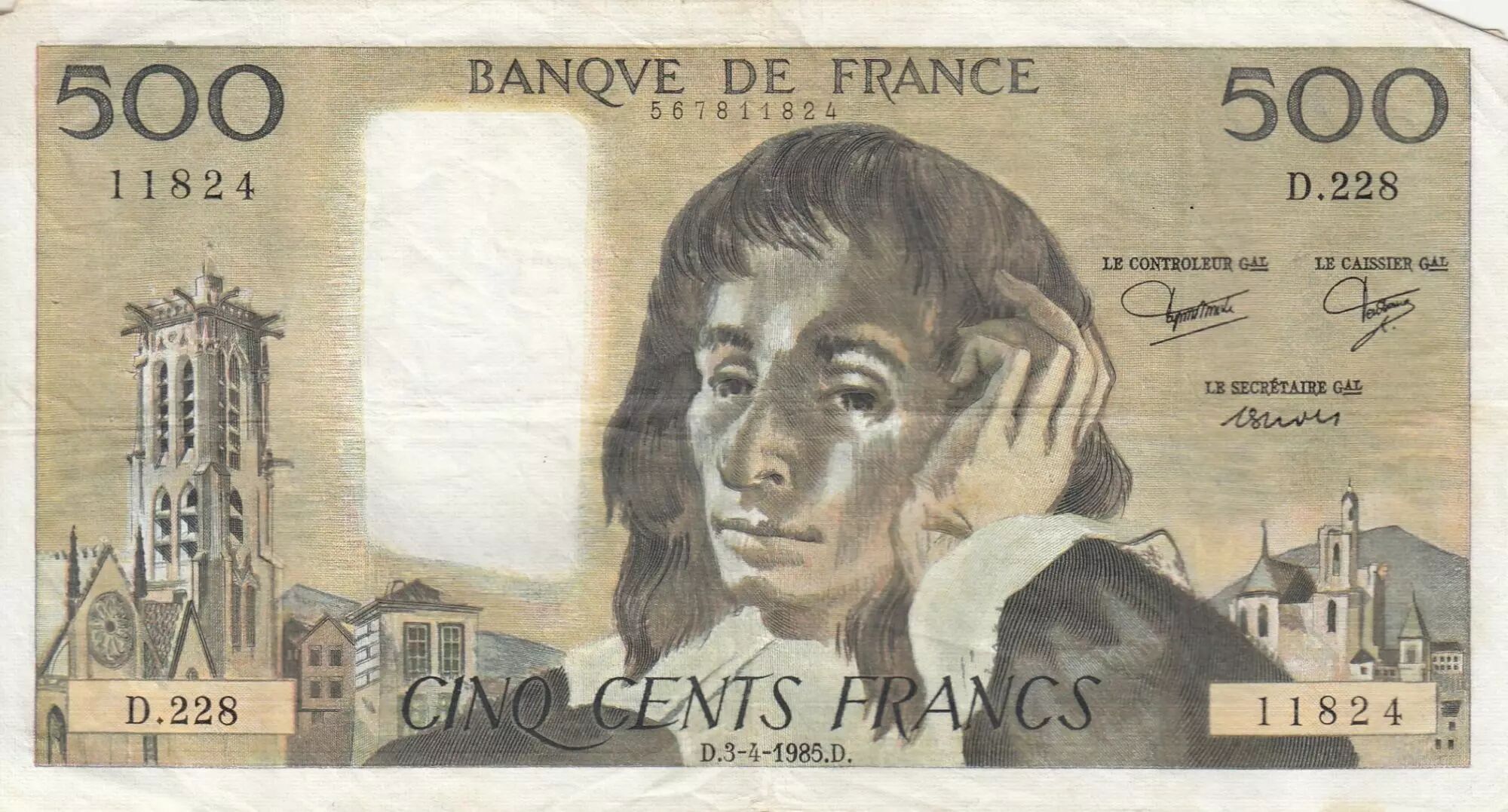 Home > > France 500 Francs - Pascal - 03-04-1985 - Serial D.228