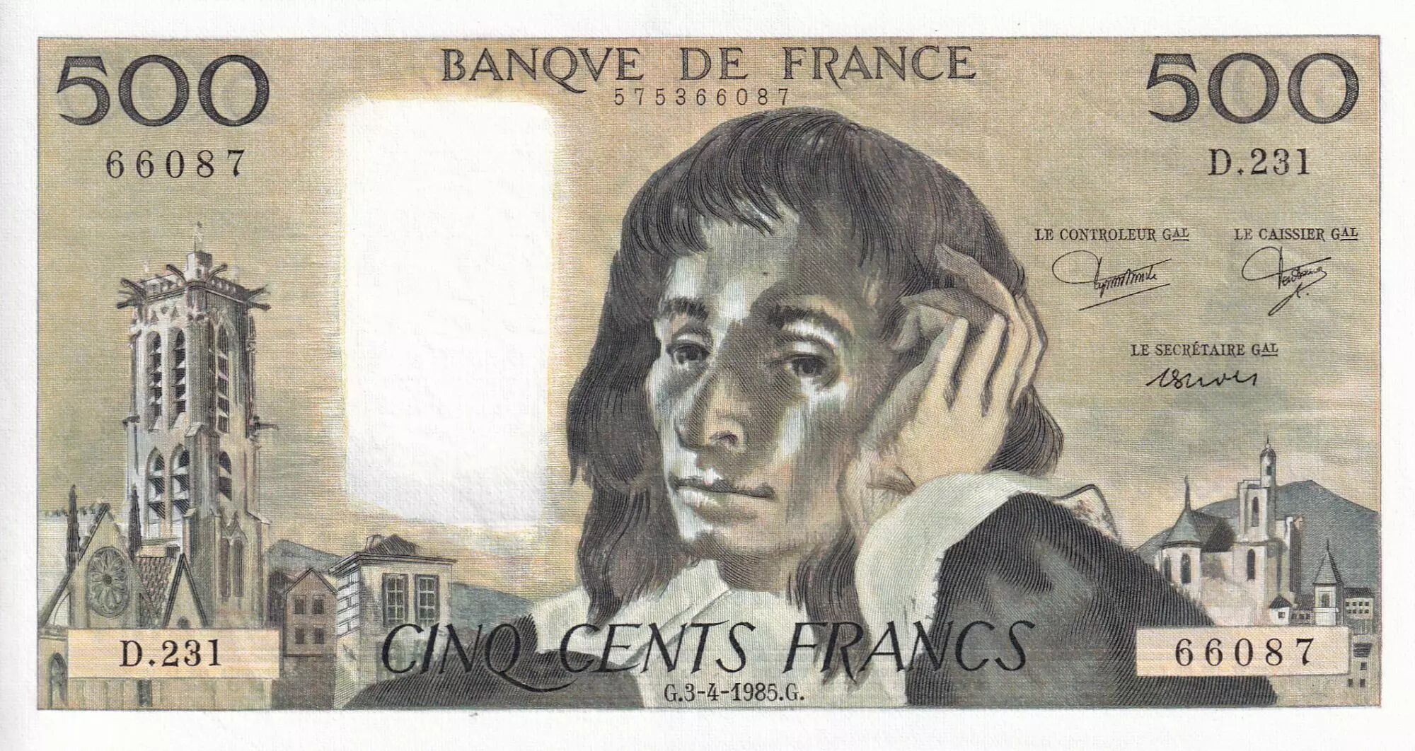 Accueil > Archivage > France 500 Francs - Pascal - 03-04-1985 - Série D.231 - F.71.33