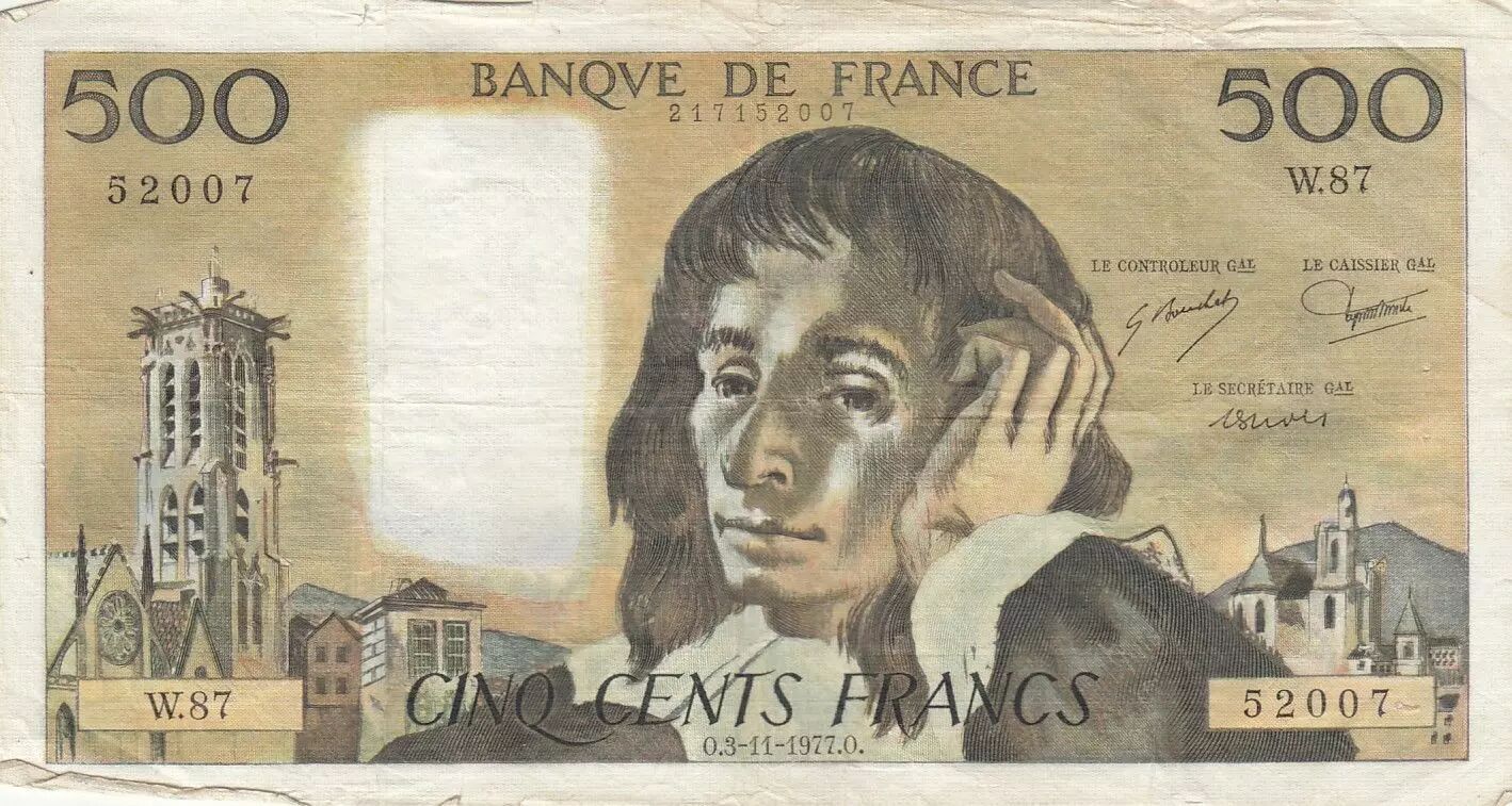 Billet France 500 francs - Pascal - 03-11-1977 - Série W.87