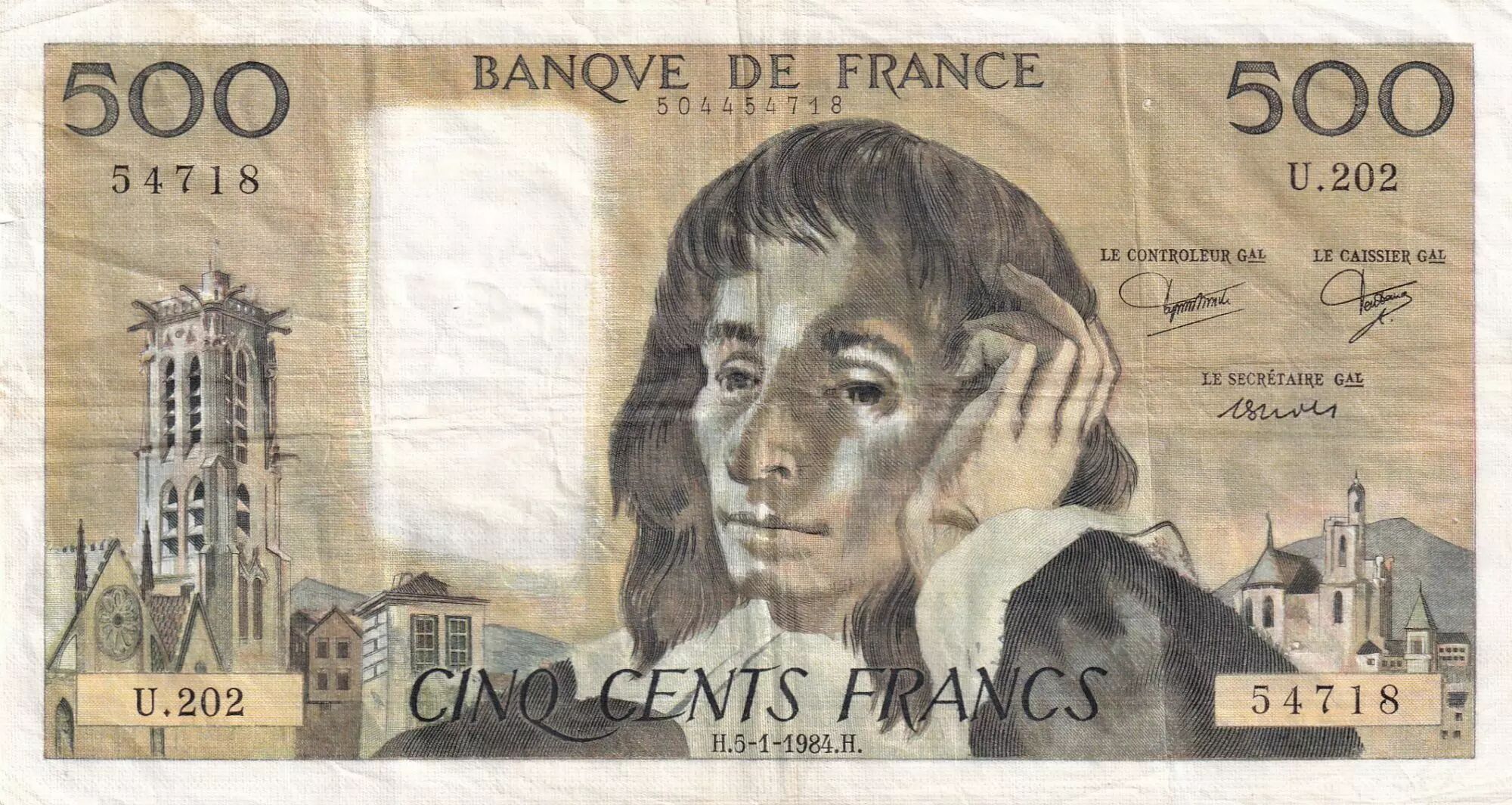 Accueil > Archivage > France 500 Francs Pascal - 05-01-1984 - Série U.202