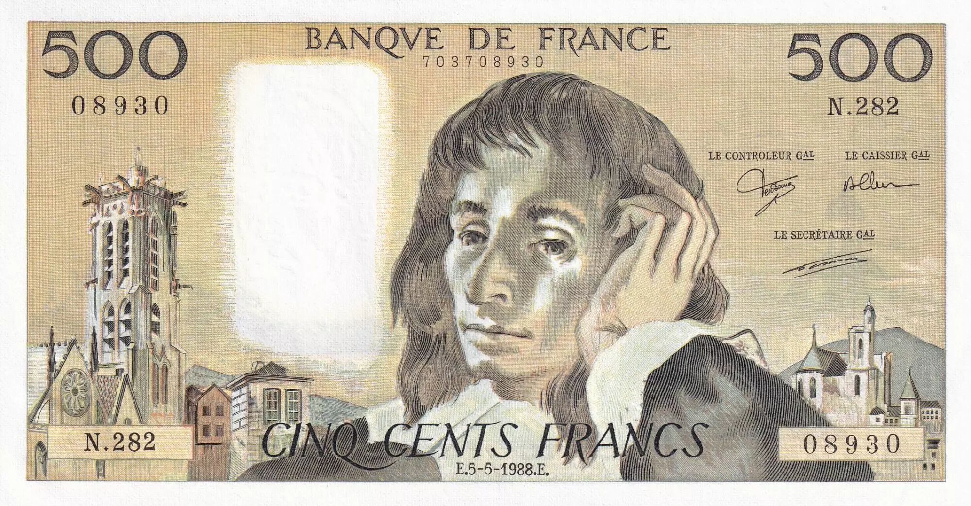 Banknote France 500 Francs - Pascal - 05-05-1988 - Serial N.282 - P.156