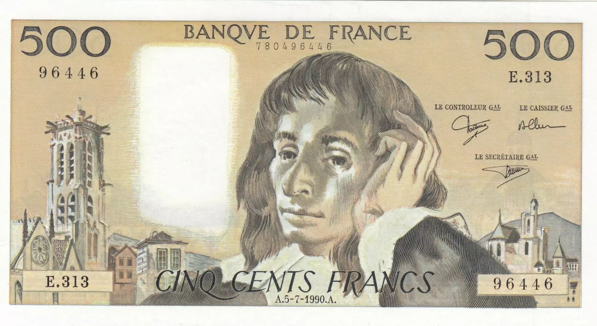 Billet France 500 Francs - Pascal - 05-07-1990 - Série E.313