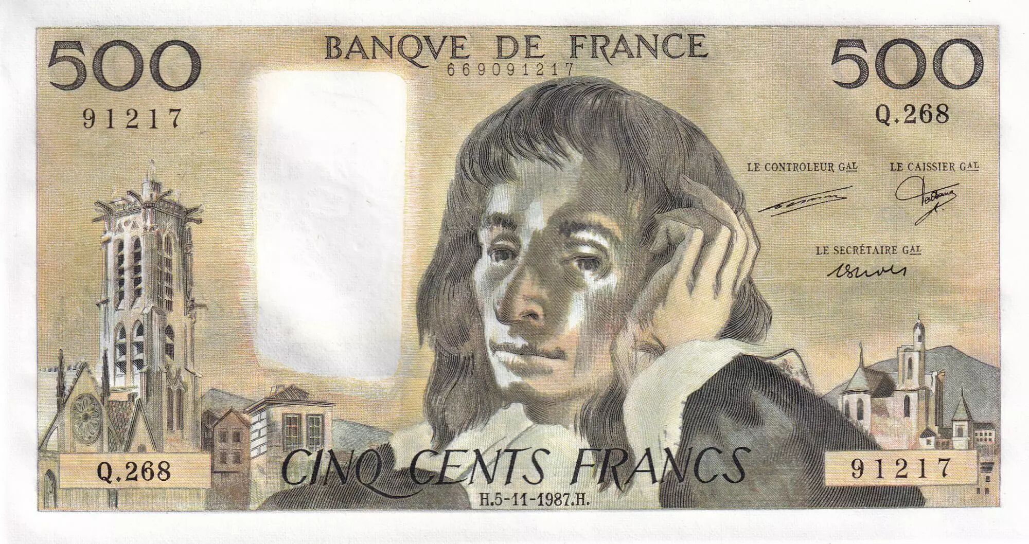 Banknote France 500 Francs - Pascal - 05-11-1987 - Serial Q.268 - P.156