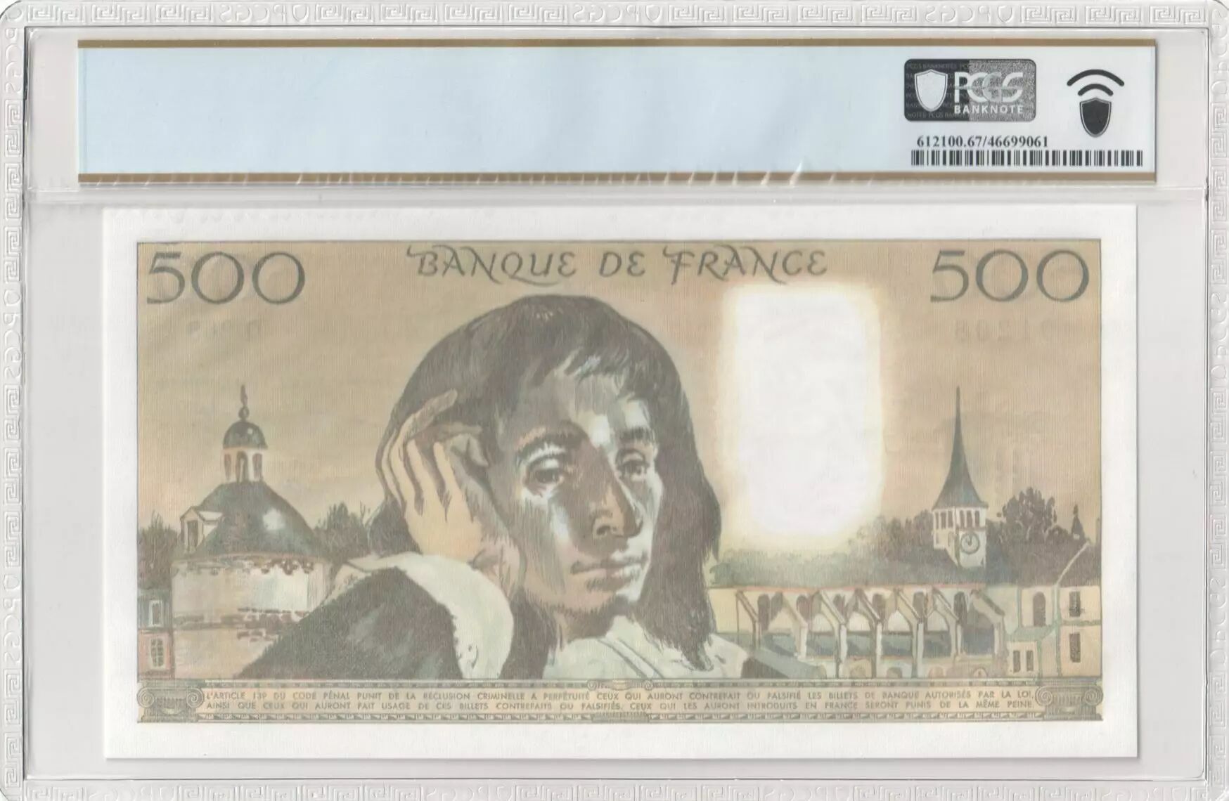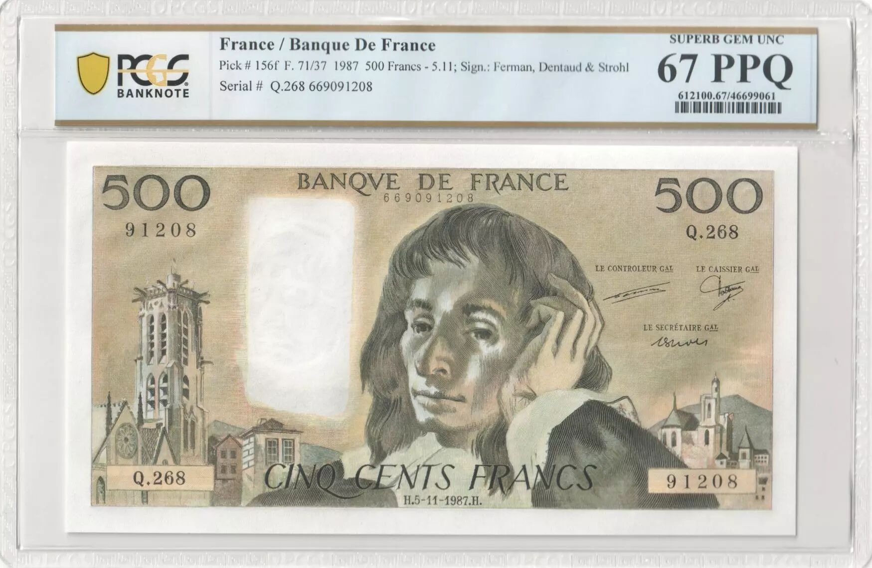 Accueil > Billets Français > Billets Banque de France > Billets 500 francs > Pascal type 1968 (1968-1993) > France 500 Francs - Pascal - 05-11-1987 - Série Q.268 - PCGS 67 PPQ