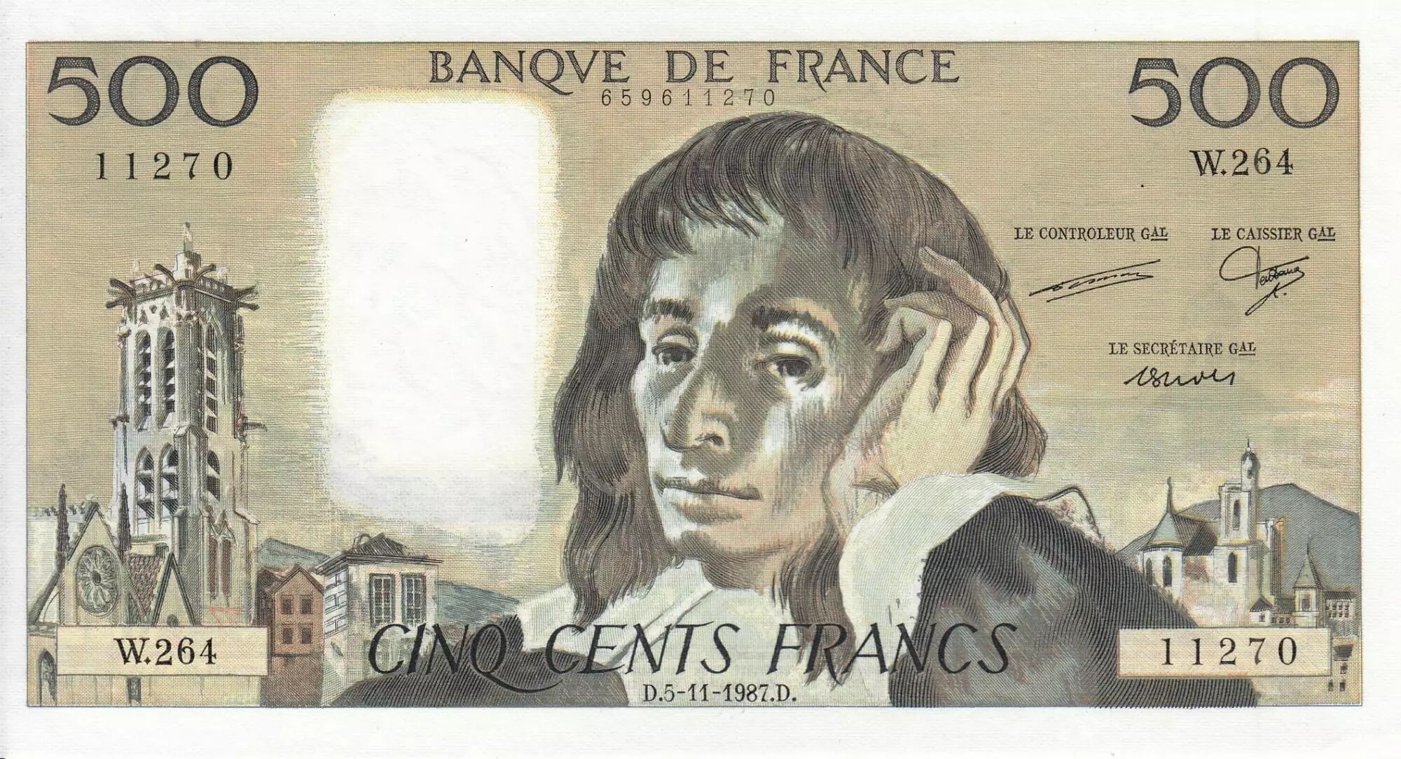Billet France 500 Francs - Pascal - 05-11-1987 - Série W.264