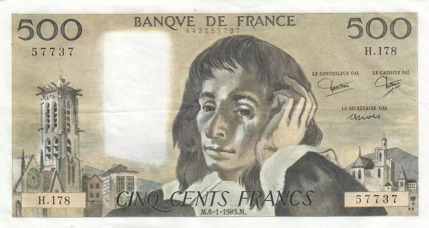 Banknote France 500 francs - Pascal - 06-01-1983 - Serial H.178
