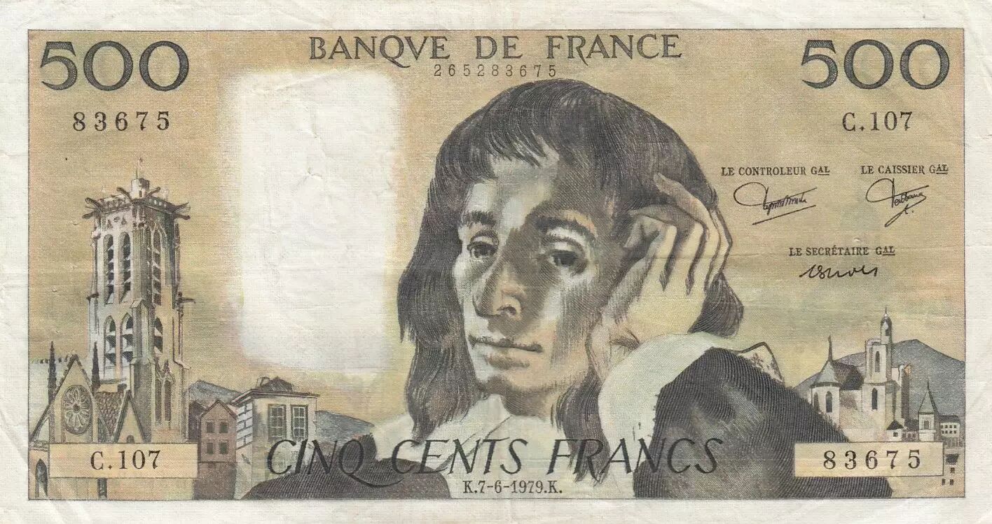 Banknote France 500 francs - Pascal - 07-06-1979 - Serial E.107
