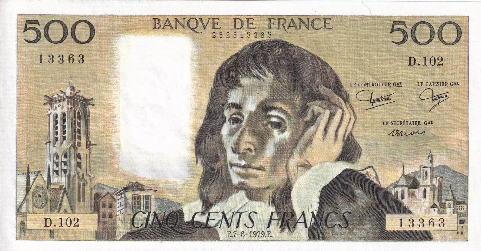 Accueil > Billets Français > Billets Banque de France > Billets 500 francs > Pascal type 1968 (1968-1993) > France 500 Francs - Pascal - 07-06-1979 - Série D.102 - F.71.20