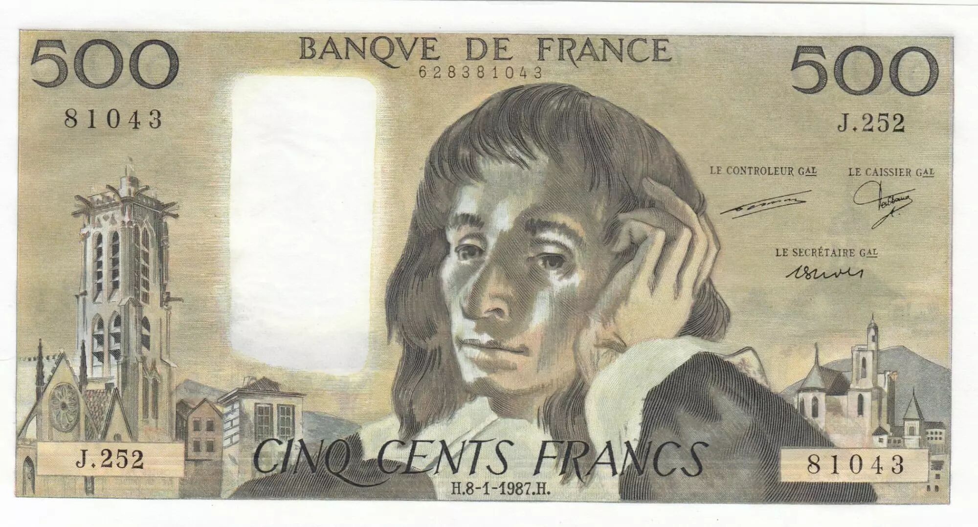 Billet France 500 Francs - Pascal - 08-01-1987 - Série J.252
