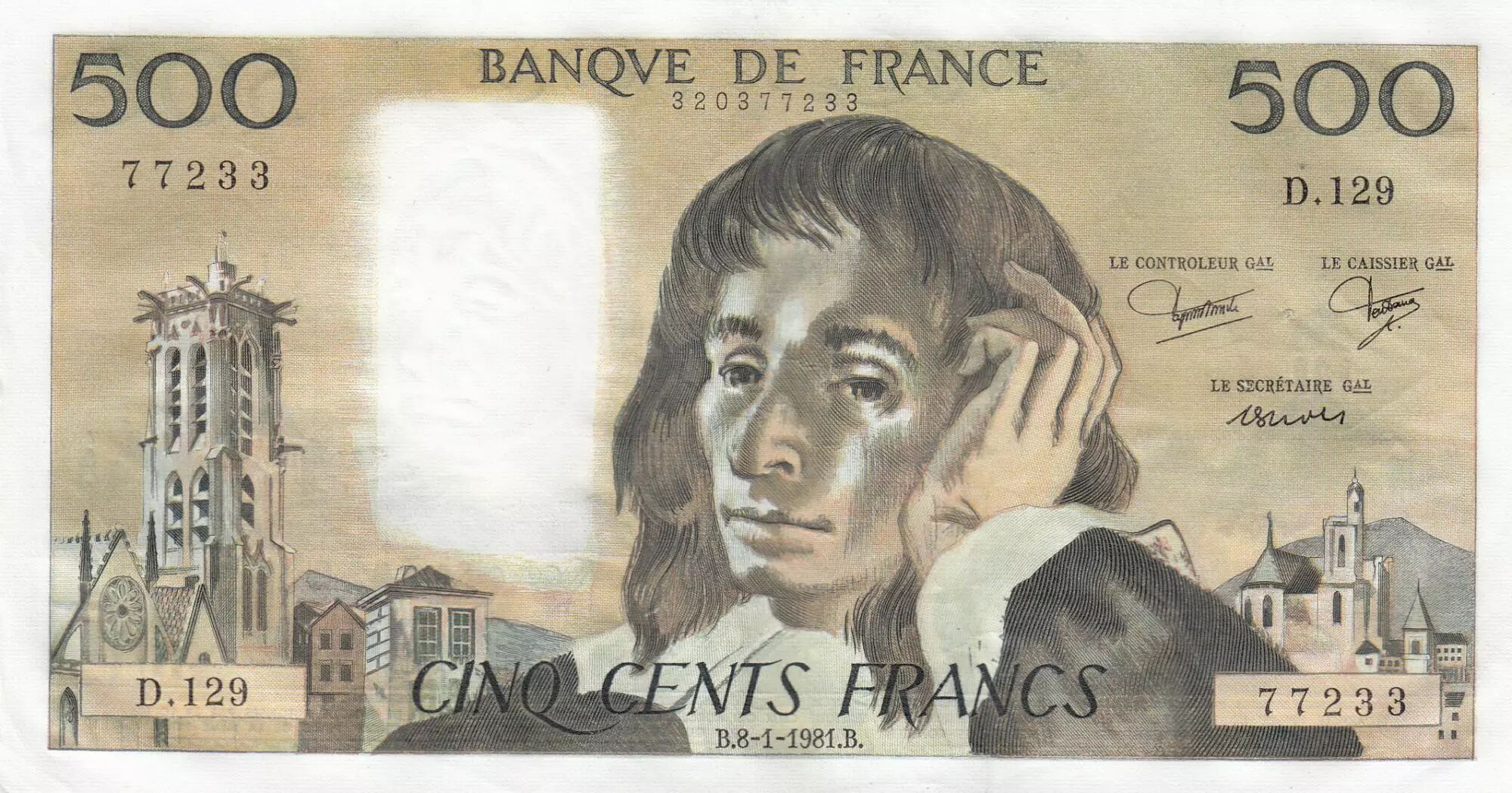 Home > > France 500 Francs Pascal - 08-01-1991 Serial D.129 - XF to AU - P.156