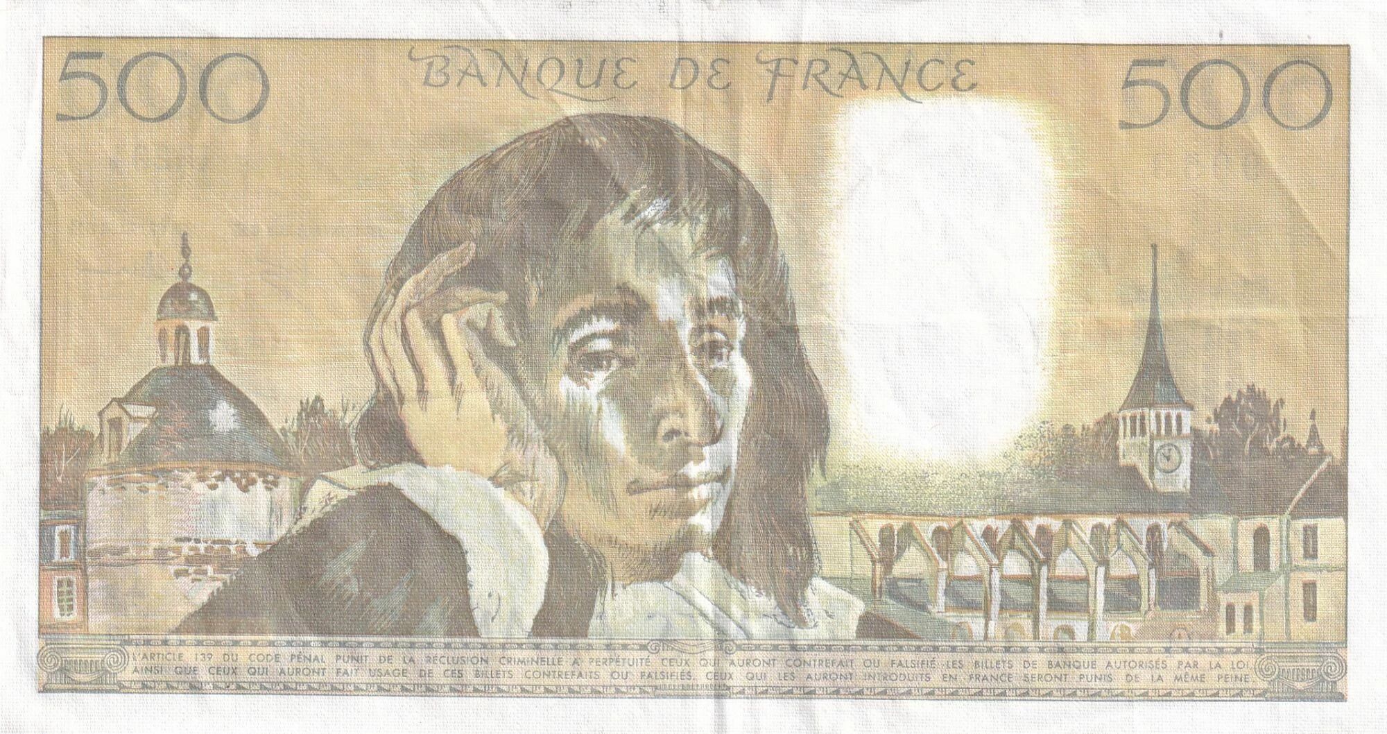 The 500 francs ?Pascal? banknote dated February 2, 1989, series U.294, belongs to the mature phase of this iconic Banque de France issue. Widely used until the introduction of the euro, this high-denomination banknote reflects a period when French fiduciary currency combined graphic sophistication, cultural richness, and high-performance security features.