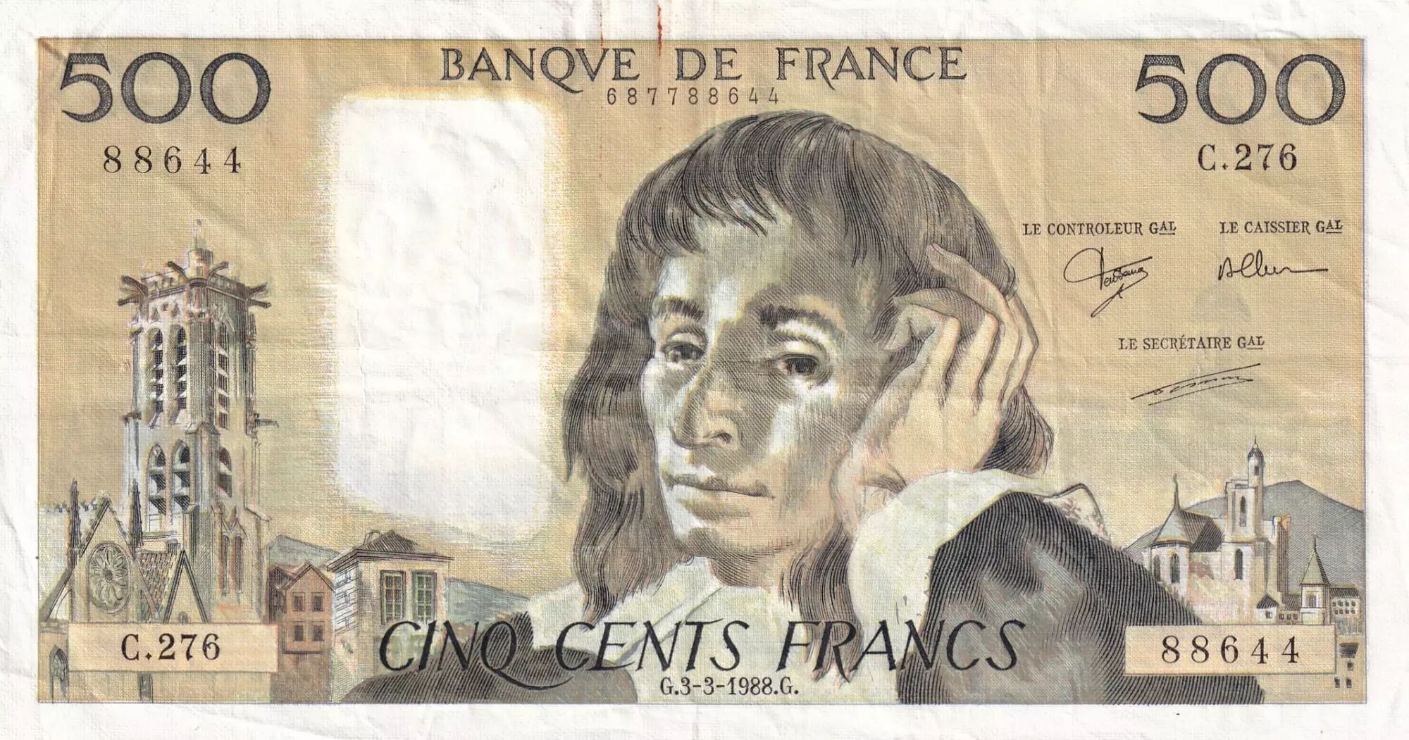 Home > > France 500 Francs Pascal - St Jacques Tower -03-03-1988 - Serial C.276 - VF