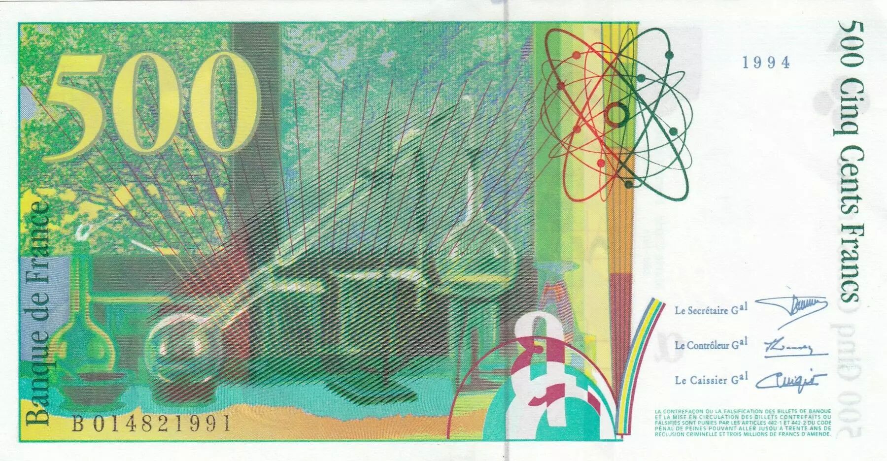Banknote France 500 Francs - Pierre and Marie Curie - 1994 - Serial B.014