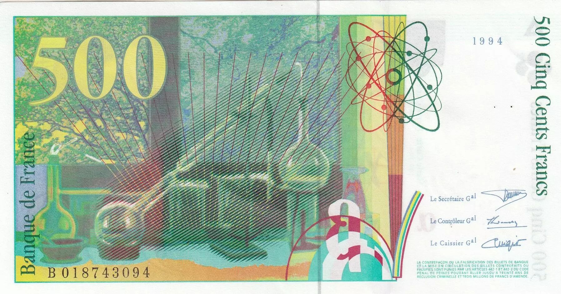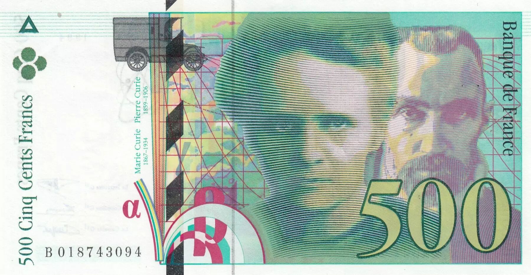 Banknote France 500 Francs - Pierre and Marie Curie - 1994 - Serial B.018