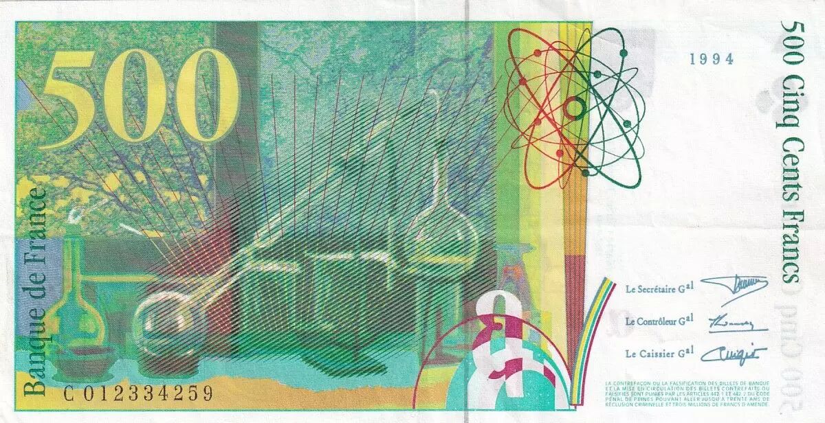 Folds. Error note with the radium symbol misaligned at the center of the watermark