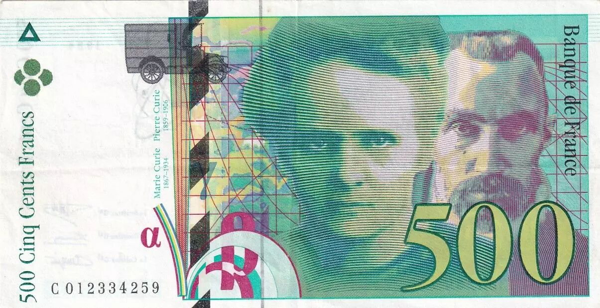 Plis. Billet fauté symbole du radium décalée au centre du filigrane