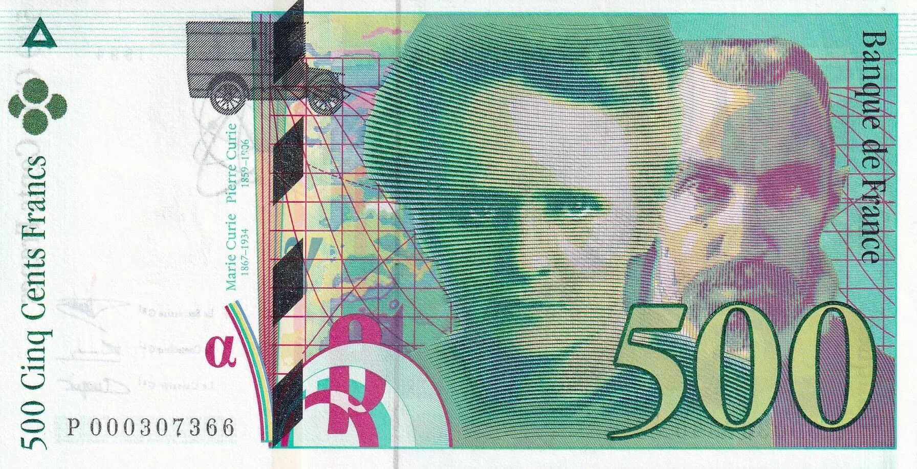 Accueil > Archivage > France 500 Francs - Pierre et Marie Curie - 1994 - Lettre P - F.76.01