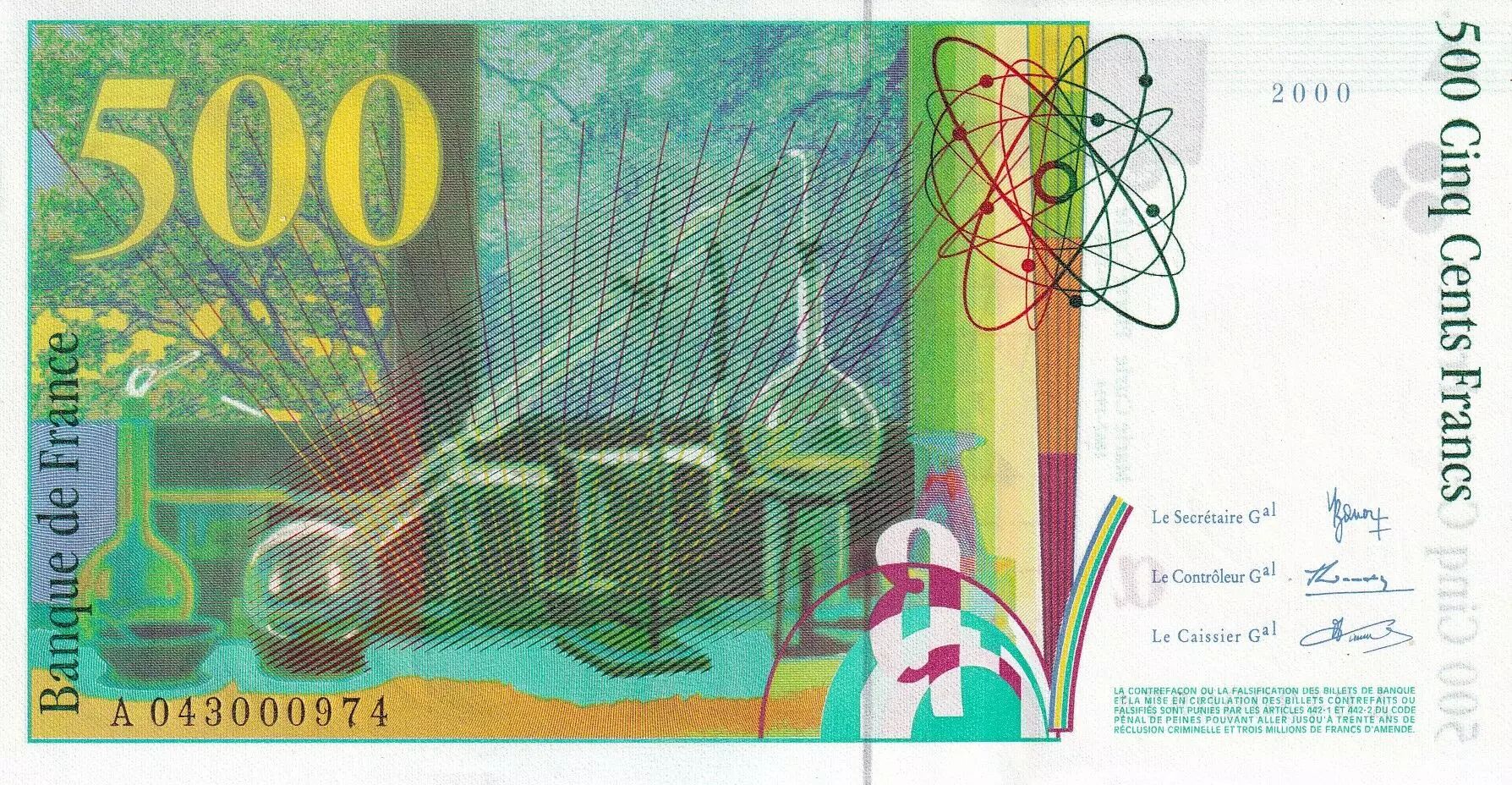 Accueil > Archivage > France 500 Francs - Pierre et Marie Curie - 2000 - Série A.043 - 974ème billet pour cette signature - F.76.05