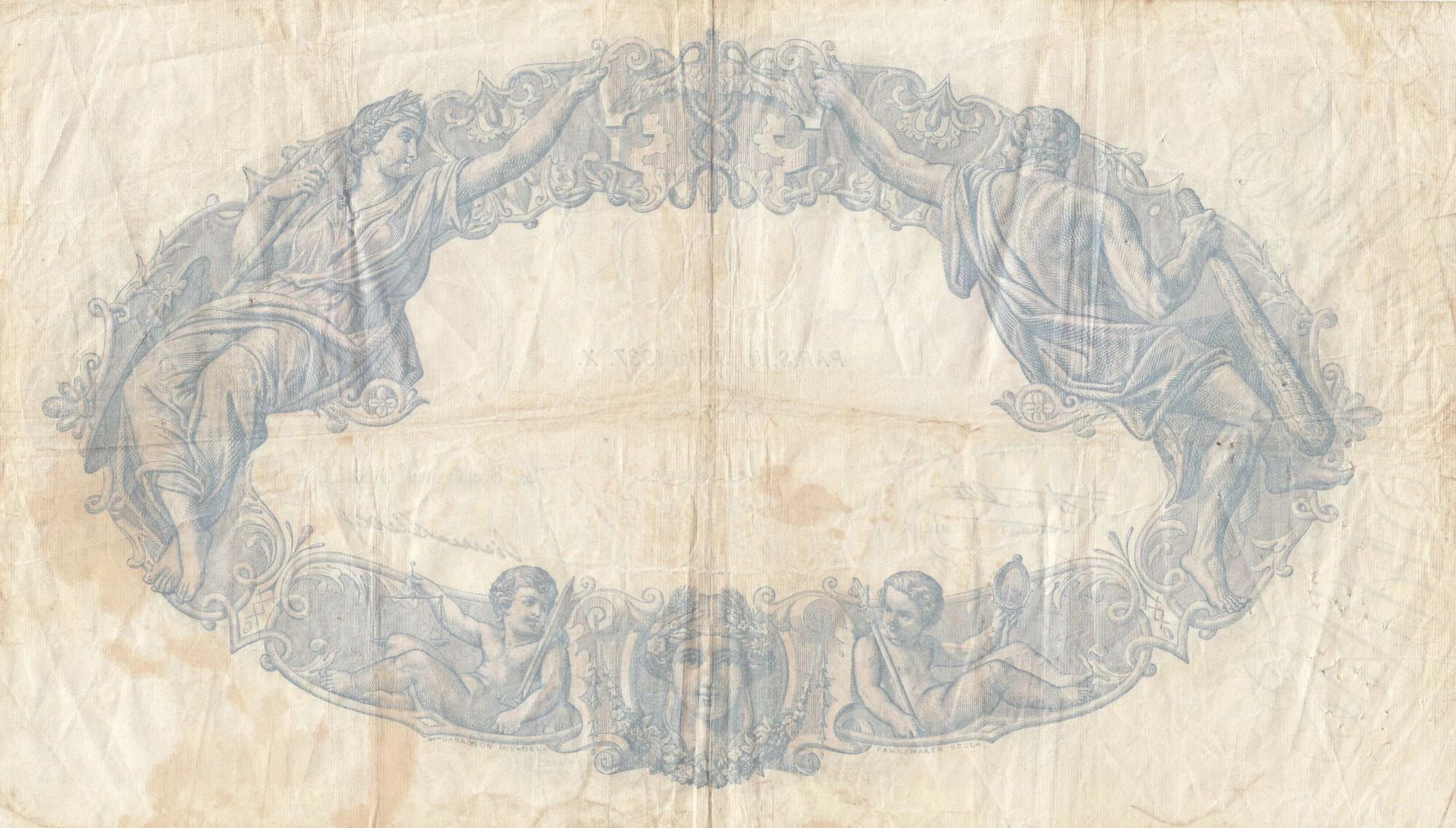 Large format, approximately 140 × 242 mm, this paper banknote is distinguished by its refined aesthetic combining blue and pink hues, as well as by a composition rich in details. It is the result of the work of renowned artists, including Georges Duval and Daniel Dupuis, associated with several engravers from the Banque de France.