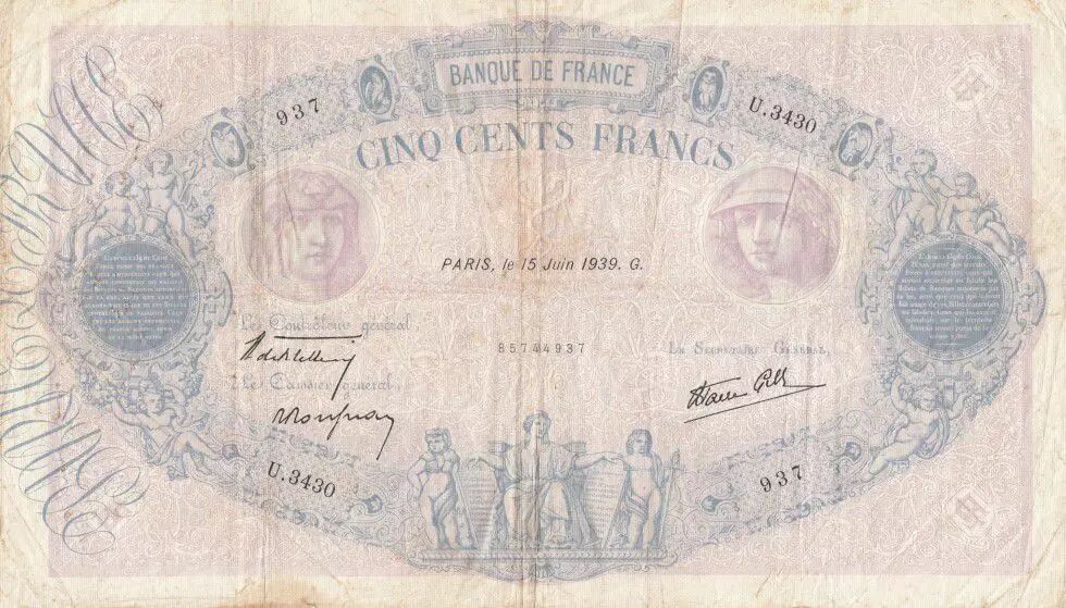 Rose et Bleu - 15-06-1939 Série U.3430 plis, epinglages, salissures, pas de manque