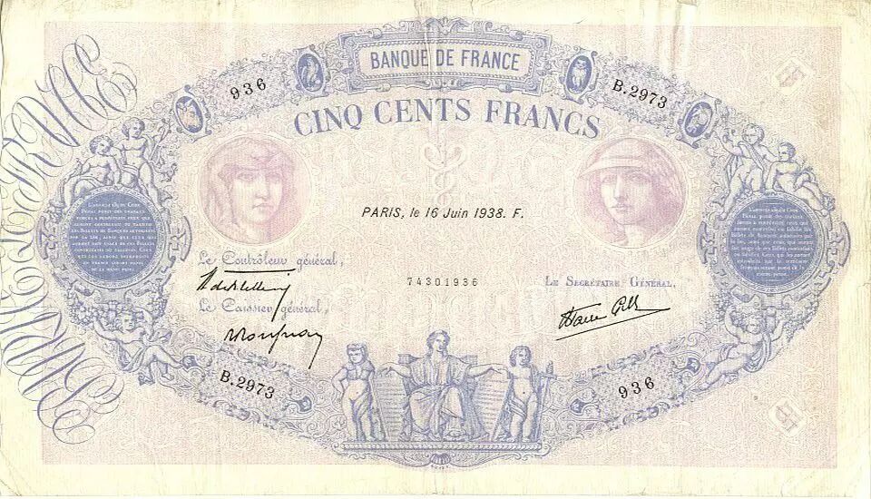 Rose et Bleu - 1938 épinglages, plis, une petite coupure en marge haute