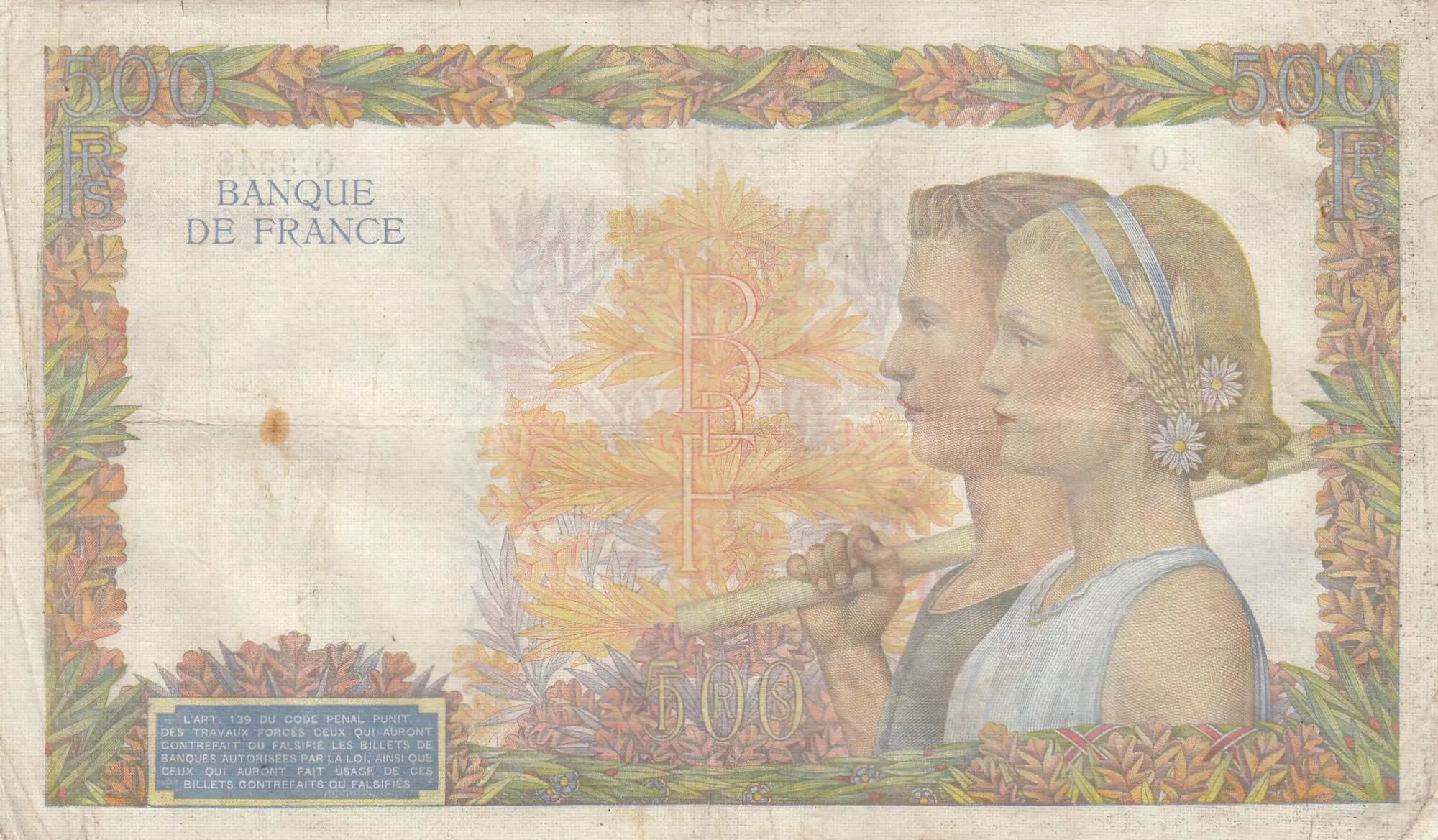 Banknote France 500 francs - The peace - 09-04-1942 - Serial Q.5546