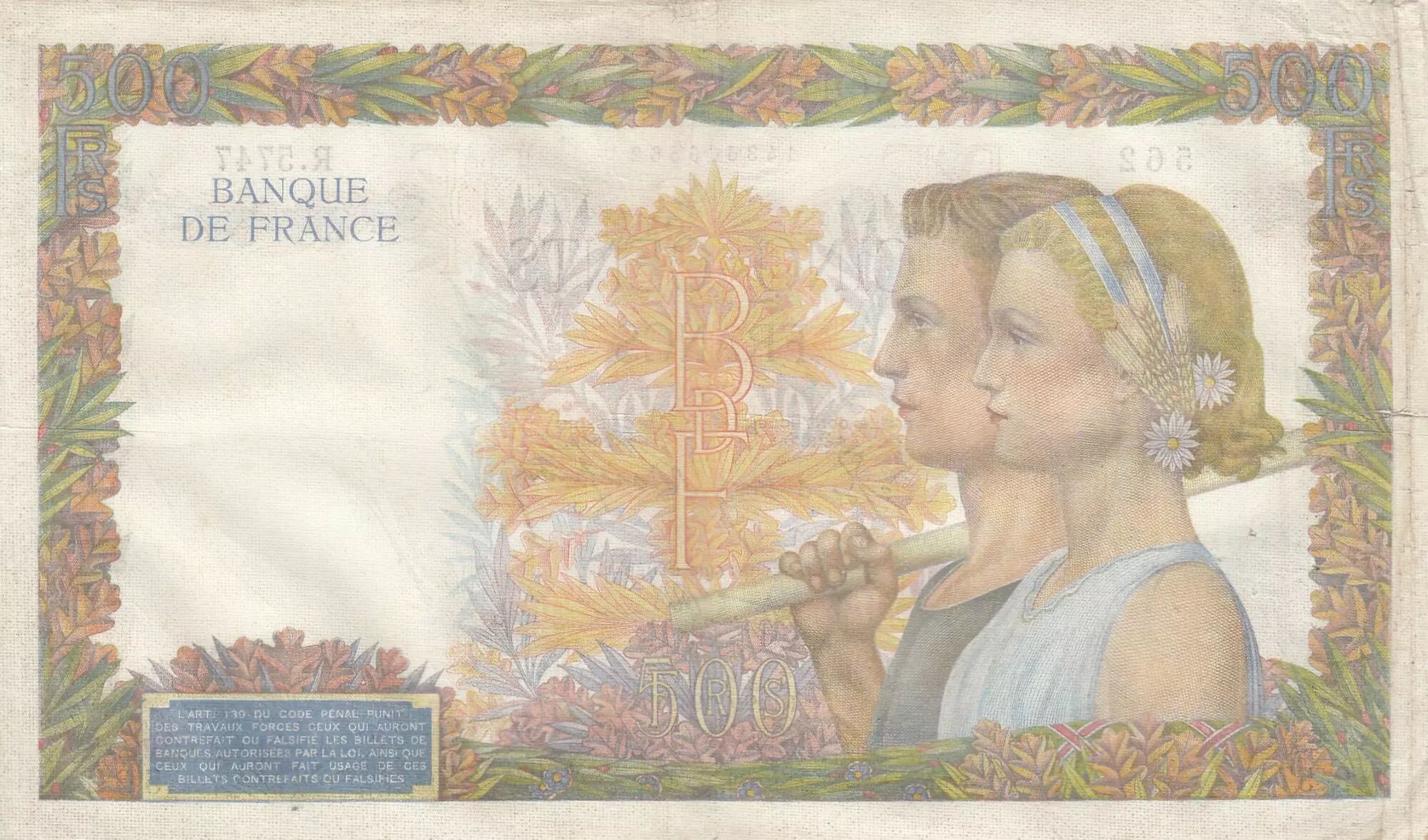 Banknote France 500 francs - The peace - 09-04-1942 - Serial R.5747