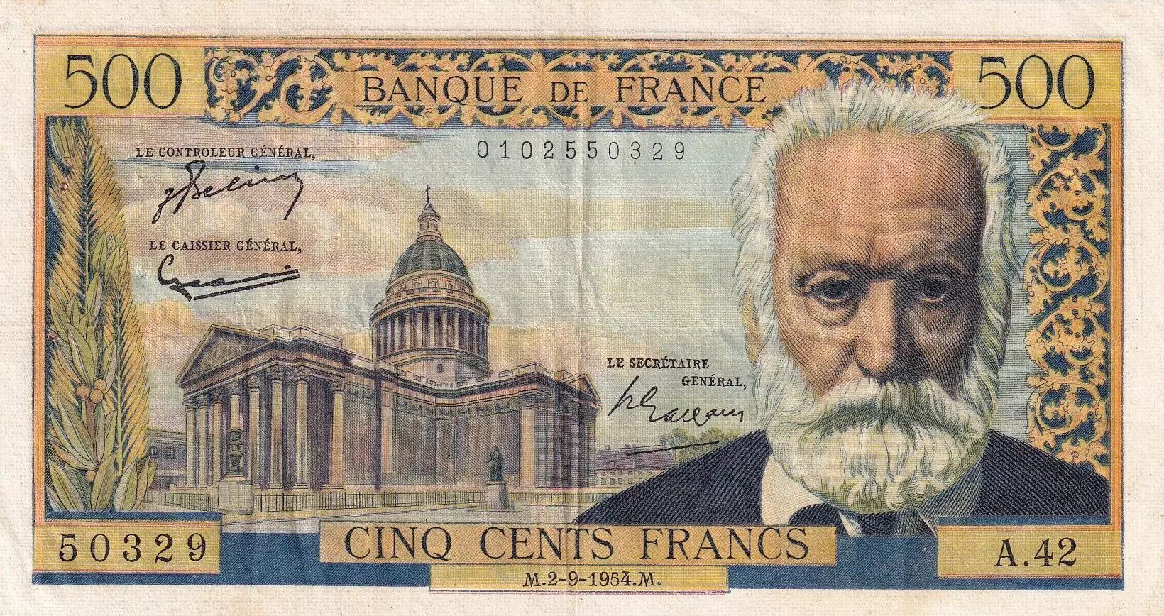 Accueil > Archivage > France 500 Francs - Victor Hugo - 02-09-1954 - Série A.42