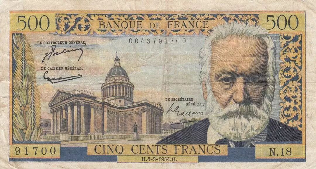 Billet France 500 Francs - Victor Hugo - 04-03-1954 - Série N.18